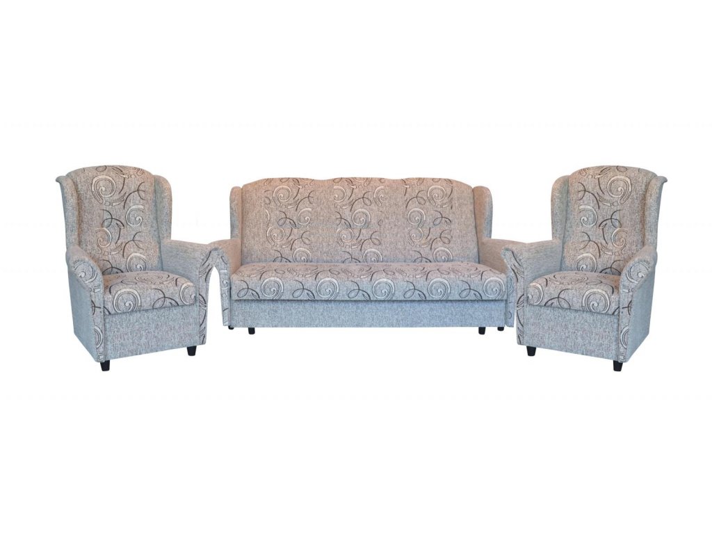 výška: celková 90 cm Elegantní sedací souprava Jana s rozkládacím trojsedem a dvěma křesly. Sedací souprava má úložný prostor a jednoduchým rozkladem vznikne lůžko na občasné...