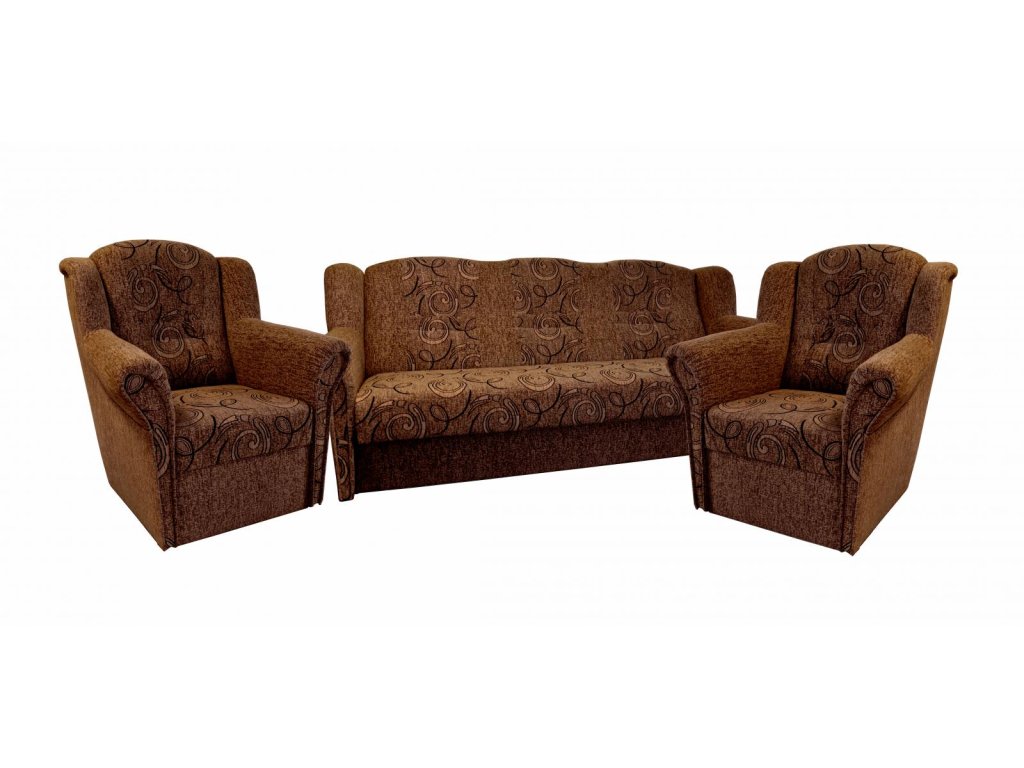 Agata je stále velmi oblíbeným klasickým modelem sedací soupravy v provedení 3F+1+1. Je velmi pohodlná a zároveň praktická. Sedací souprava je rozkládací a samozřejmostí je i úložný prostor. Jednoduchým rozkladem pomocí systému "klik klak" vznikne lůžko k příležitostnému přespání Vaší návštěvy. Sedací souprava je potažena kvalitní látkou a nabízíme ji v několika barvách, ze kterých si určitě vyberete tu nejvhodnější pro Váš obývací pokoj. Výpň sedáků tvoří pružiny v kombinaci s kvalitní PUR pěnou. Tato kombinace zajistí velmi pohodlné sezení. Cena sedací soupravy je uvedena za rozkládací trojsed a dvě křesla.