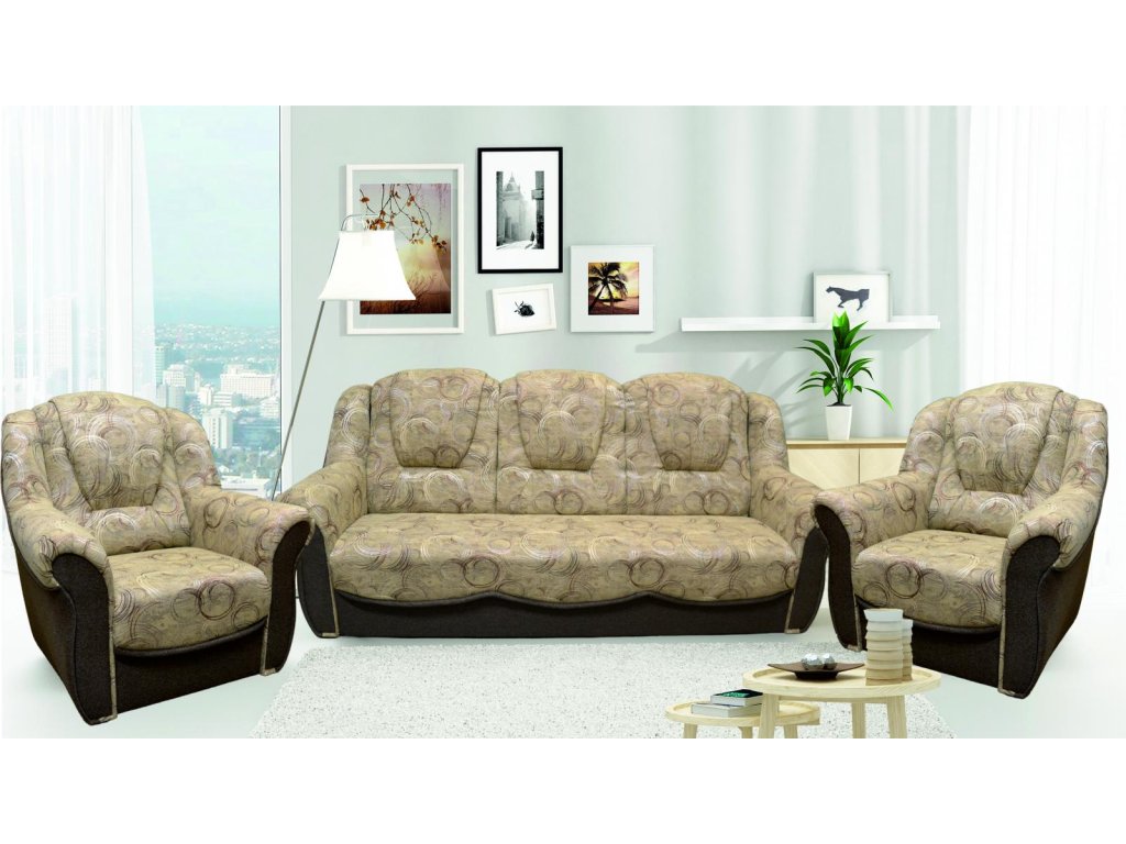 Elegantní sedací souprava, která svým vzhledem a provedením zaručuje luxus a pohodlí. Přinášíme Vám akční cenu za tuto soupravu, která obsahuje trojsedák a 2 křesla. Trojsedák...