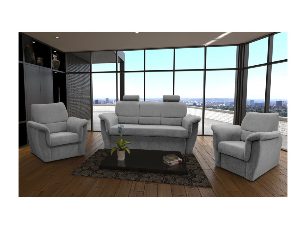 Sedací souprava Nadia vyniká svým elegantním vzhledem a praktičností. Je rozkládací a úložný prostor najdete jak v pohovce, tak v obou křeslech. Jednoduchým rozkladem vynikne lůžko k příležitostnému přespání. Výplň sedáků tvoří pružiny bonell s kvalitní PUR pěnou. Tato kombinace zajistí velmi pohodlné sezení. V ceně pohovky jsou 2 výškově nastavitelné opěrky hlavy, které podtrhnou komfort sezení. Ostatní vyobrazené dekorace nejsou v ceně.