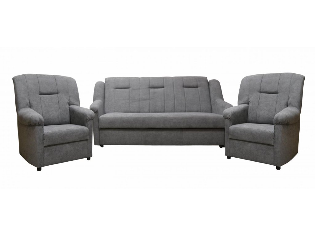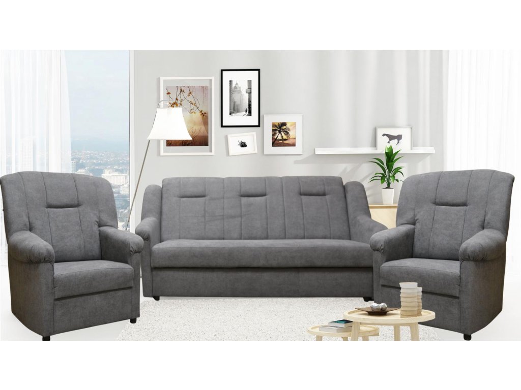 Klasická sedací souprava v šedé barvě je velice oblíbená. Je rozkládací a součástí je praktický úložný prostor. Svou kombinací trojsedu, dvou křesel a dvou taburetů...