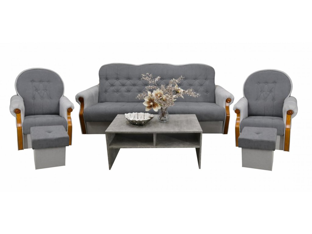 Klasická sedací souprava v šedé barvě je velice oblíbená. Je rozkládací a součástí je praktický úložný prostor. Svou kombinací trojsedu, dvou křesel a dvou taburetů je...