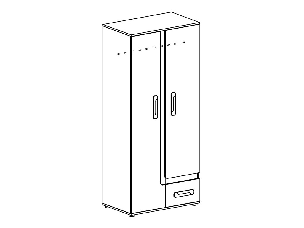 Dvoudvéřová šatní skříň APETTITA ze sektorové řady, která se vyznačuje netradičním zpracováním barev a originalitou úchytů. Tento styl nábytku zaujme každou mladší generaci. Skříň je vyrobena z kvalitní LTD desky hraněné ABS lištou. Korpus je v barvě dub jasný, dveře jsou bílé matné. Úchytky jsou v barevné kombinaci dub jasný/bílá. Uvnitř skříně je šatníková tyč, v dolní části je zásuvka. Sektorový nábytek APETTITA má široký výběr prvků, který Vám zaručí sestavit si dětský nebo studentský pokoj, ložnici či kancelář podle svých potřeb, přání a představ. Dodáváme v demontovaném stavu.Doplňkové parametry
