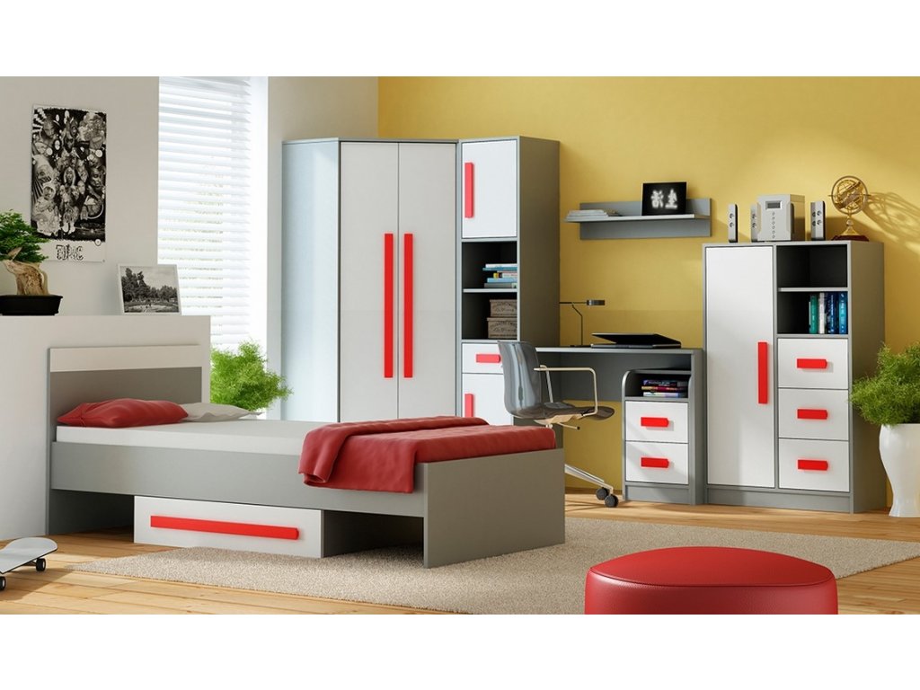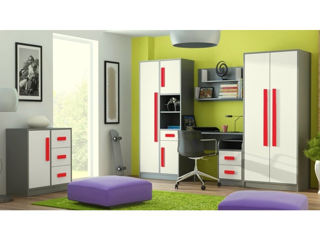 Dvoudveřová šatní skříň GYT ze sektorové řady, která se vyznačuje netradičním zpracováním barev a originalitou úchytů. Tento styl nábytku zaujme každou mladší generaci. Skříň je vyrobena z kvalitní LTD desky hraněné ABS lištou. Korpus je v barvě šedá antracit, dveře jsou bílé matné. Úchytky jsou v červené barvě. Uvnitř skříně je šatníková tyč a police. Sektorový nábytek GYT má široký výběr prvků, který Vám zaručí sestavit si dětský nebo studentský pokoj, ložnici či kancelář podle svých potřeb, přání a představ. Dodáváme v demontovaném stavu.Doplňkové parametry