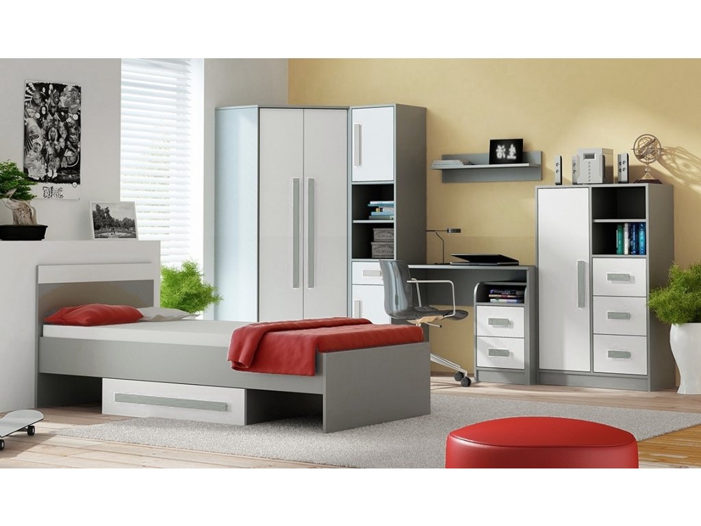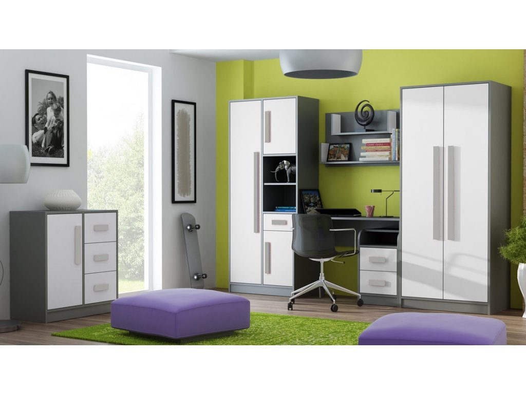 Dvoudveřová šatní skříň GYT ze sektorové řady, která se vyznačuje netradičním zpracováním barev a originalitou úchytů. Tento styl nábytku zaujme každou mladší generaci. Skříň je vyrobena z kvalitní LTD desky hraněné ABS lištou. Korpus je v barvě šedá antracit, dveře jsou bílé matné. Úchytky jsou v šedé barvě. Uvnitř skříně je šatníková tyč a police. Sektorový nábytek GYT má široký výběr prvků, který Vám zaručí sestavit si dětský nebo studentský pokoj, ložnici či kancelář podle svých potřeb, přání a představ. Dodáváme v demontovaném stavu.Doplňkové parametry