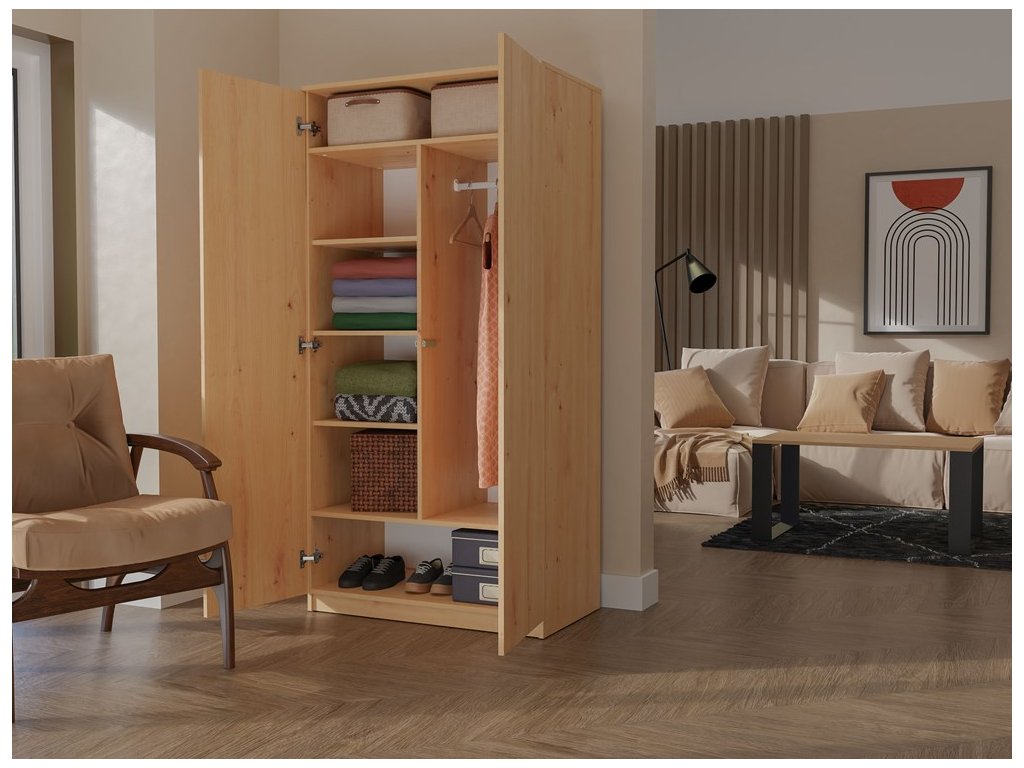 Moderní šatní skříň z kolekce MALWA je funkční a prostorný kus nábytku, který se skvěle hodí do vaší ložnice, dětského pokoje nebo kanceláře. Skříň obsahuje 7 polic a šatní tyč. Svým univerzálním designem splňuje očekávání všech těch, kteří upřednostňují spojení jednoduchosti a elegance ve svém domově. Vyrobeno z kvalitní LTD desky, která má tloušťku 16 mm a je nenáročná na údržbu. Dodáváme v demontu. V naší další nabídce naleznete kompletní sortiment z kolekce MALWA.