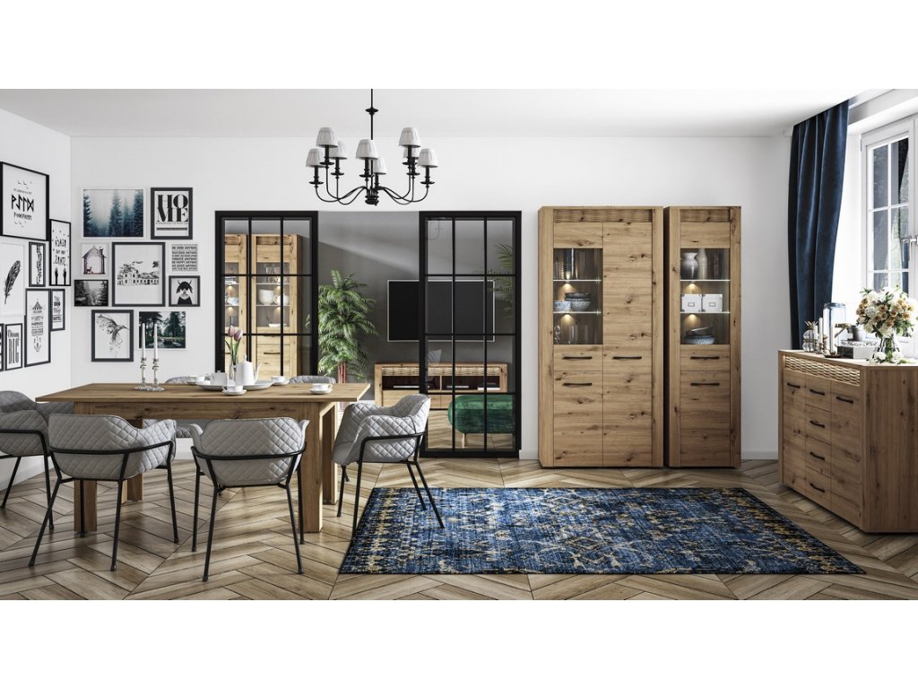 šířka: 92 cm | výška: 140 cm | hloubka: 40 cm Vitrína dvoudveřová je vyrobena z kvalitní desky LTD hraněné ABS páskou v barvě dub artisan. Dvířka jsou vybaveny systémem tichého...