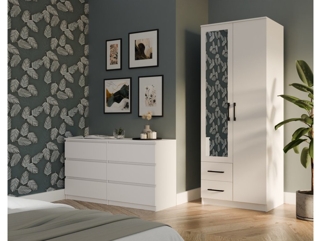 Šatní skříň se zrcadlem ROMA 2D2S bílá