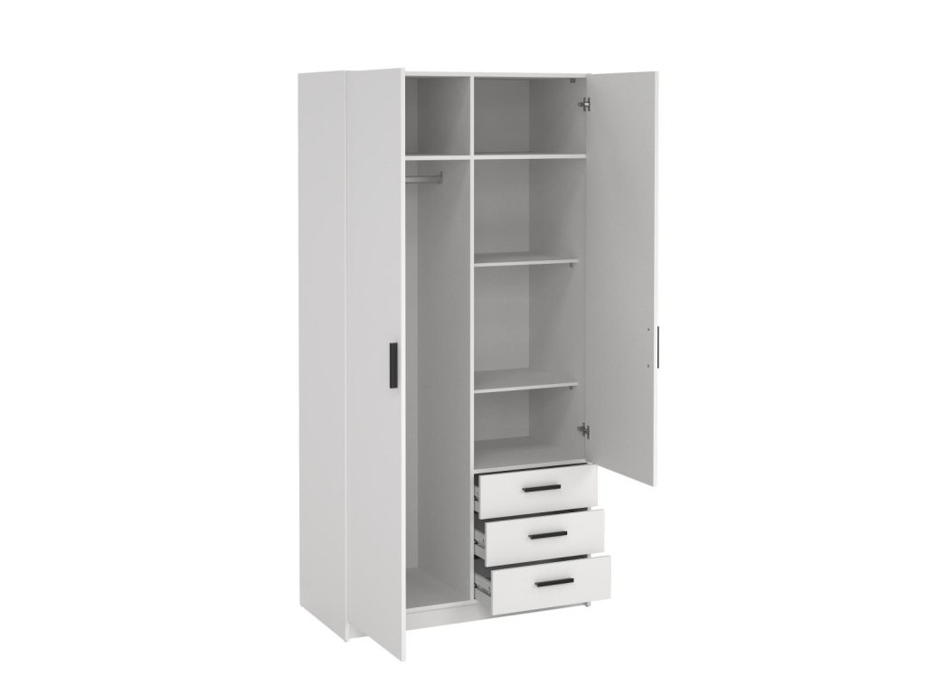šířka: 80 cm | výška: 190 cm | hloubka: 50 cm Dvoudveřová šatní skříň NIKO ze sektorové řady, která se vyznačuje netradičním zpracováním barev a originalitou úchytů. Tento styl...