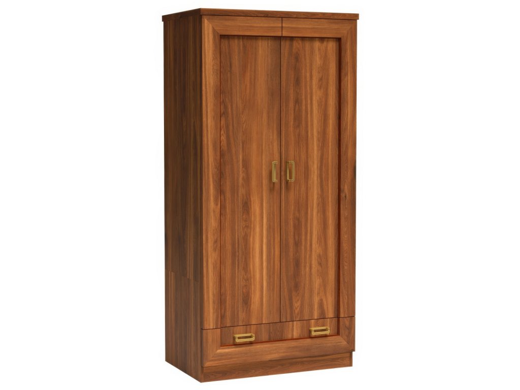 Šatní skříň dvoudveřová s 1 zásuvkou ze sektorové řady. Skříň má 2 dveře, 1 praktickou zásuvku a uvnitř volný prostor se šatní tyčí. Systém je exkluzivní kolekce navržena v duchu vintage. Celá řada se vyznačuje elegancí a jednoduchými tvary, které zaručují plné využití prostoru. Nábytek je vyroben z velmi kvalitní LTD o tloušťce 16 mm, horní deska zesílena na 32 mm, lišty na čele nábytku jsou MDF, hrany ABS. Tvrzené sklo ve vitrínách je jemně zdobené. Elegantní úchyty jsou z kovu. Barevné provedení dub stoletý. Dodáváme v demontovaném stavu.Doplňkové parametry
