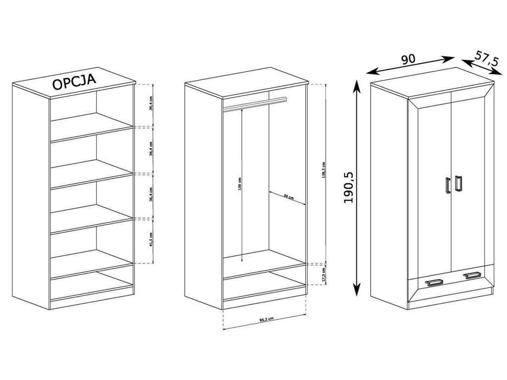 šířka: 96 cm | výška: 192 cm | hloubka: 58 cm Šatní skříň ze sektorové řady. Skříň má 2 dveře a 1 zásuvku. Uvnitř skříně je prostor se šatní tyčí. Systém je exkluzivní kolekce...