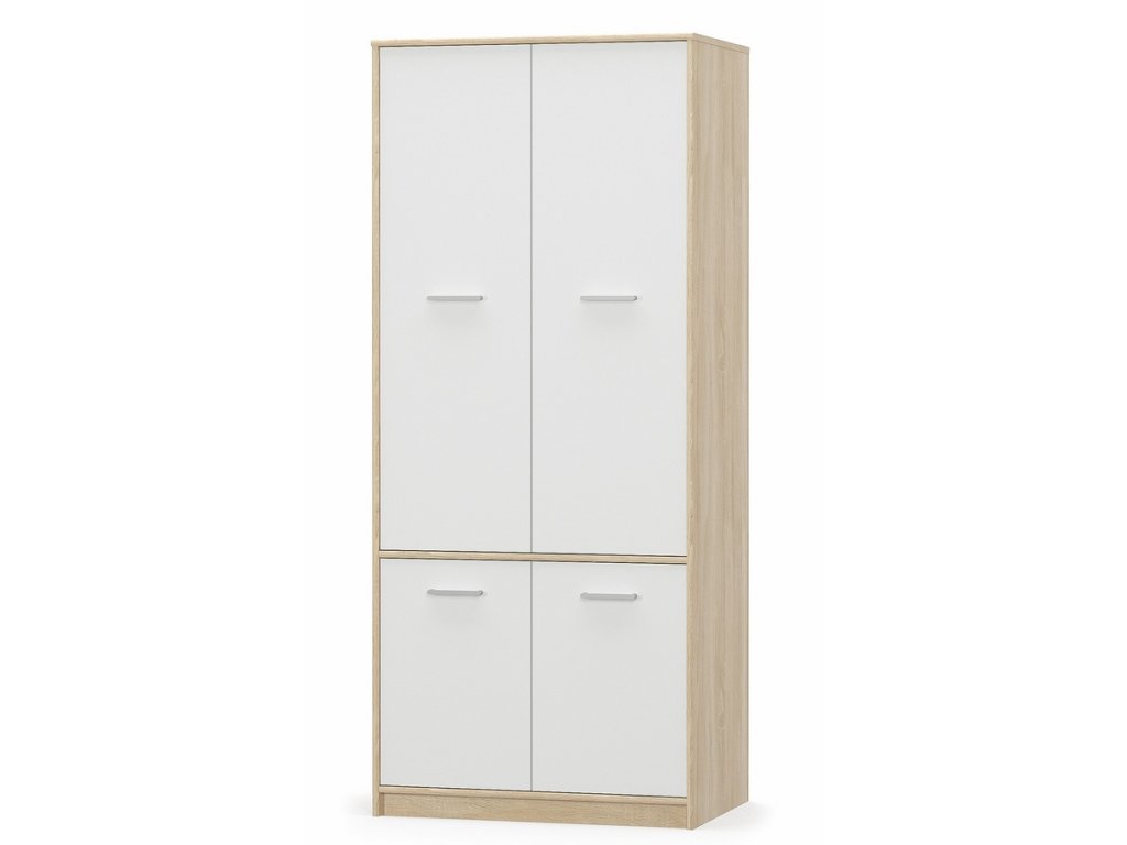 Šatní skříň čtyřdveřová ze sektorového nábytku v moderním provedení. Skříň je vyrobena z kvalitní LTD desky v barevné kombinaci dub sonoma / bílá mat. Nabídka komponentů této sektorové řady umožňuje sestavit si nábytek do obývacího, dětského nebo studentského pokoje dle vlastních představ. Dodáváme v demontovaném stavu.Doplňkové parametry