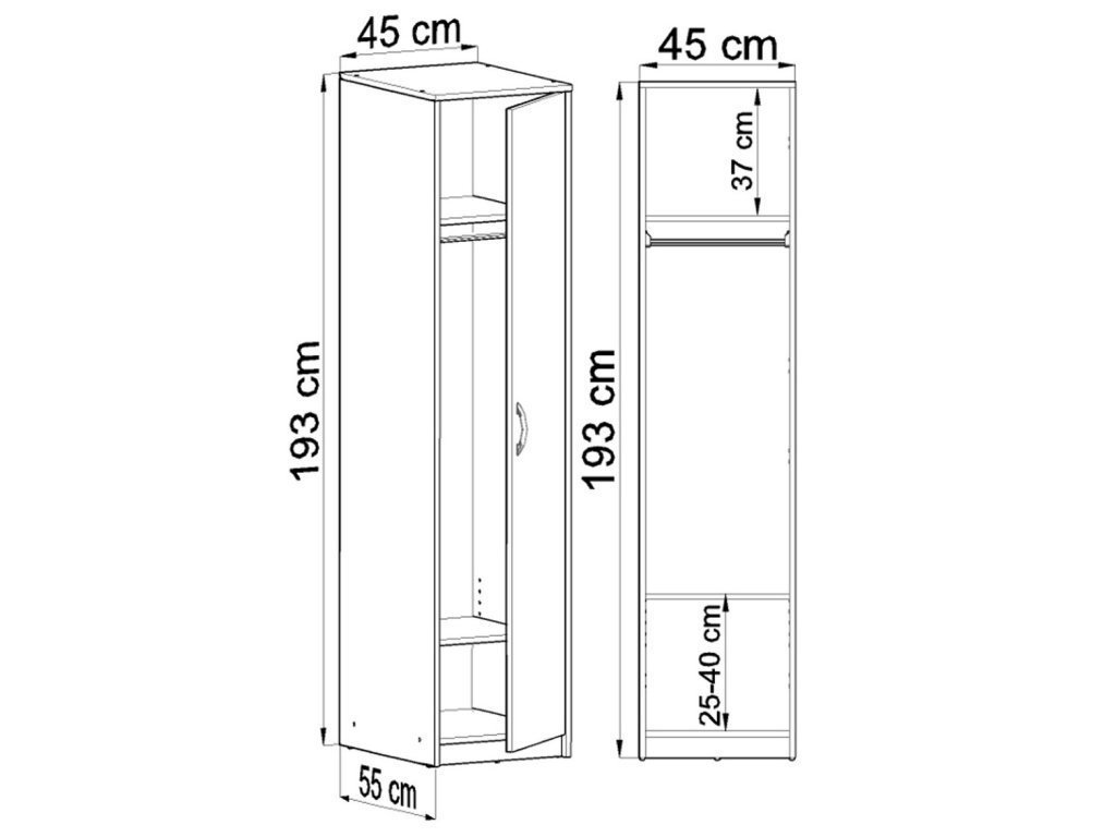 šířka: 46 cm | výška: 190 cm | hloubka: 57 cm Skříň jednodveřová s 1 zásuvkou, pravá ze sektorové řady. Skříň má 1 dveře a 1 praktickou zásuvku, uvnitř je volný prostor se šatní...