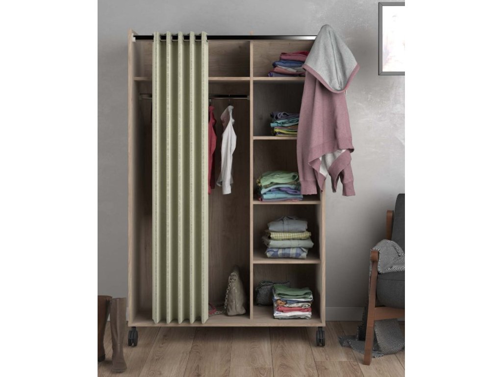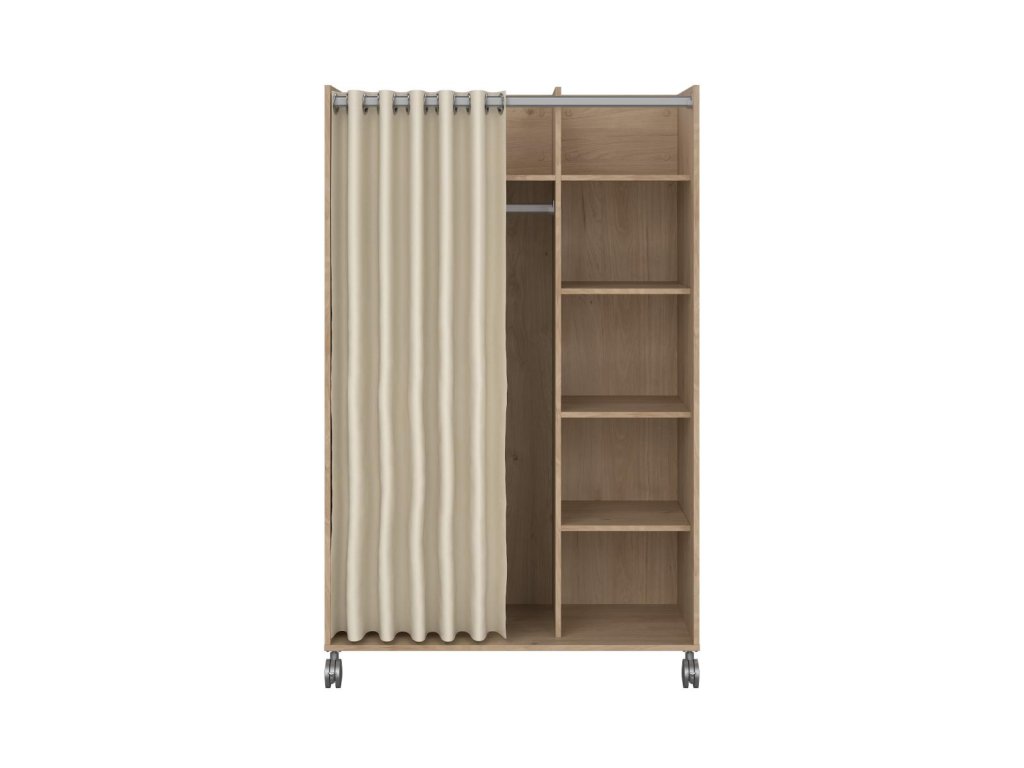Série šatních skříní Harmony přináší praktické a originální řešení úložného prostoru. Dveře skříně jsou nahrazeny textilním závěsem. Mobilní skříň je vyrobená z kvalitního a snadno udržovatelného lamina. Skvěle se hodí do dětského nebo studentského pokoje, předsíně, kanceláře i domácí pracovny.