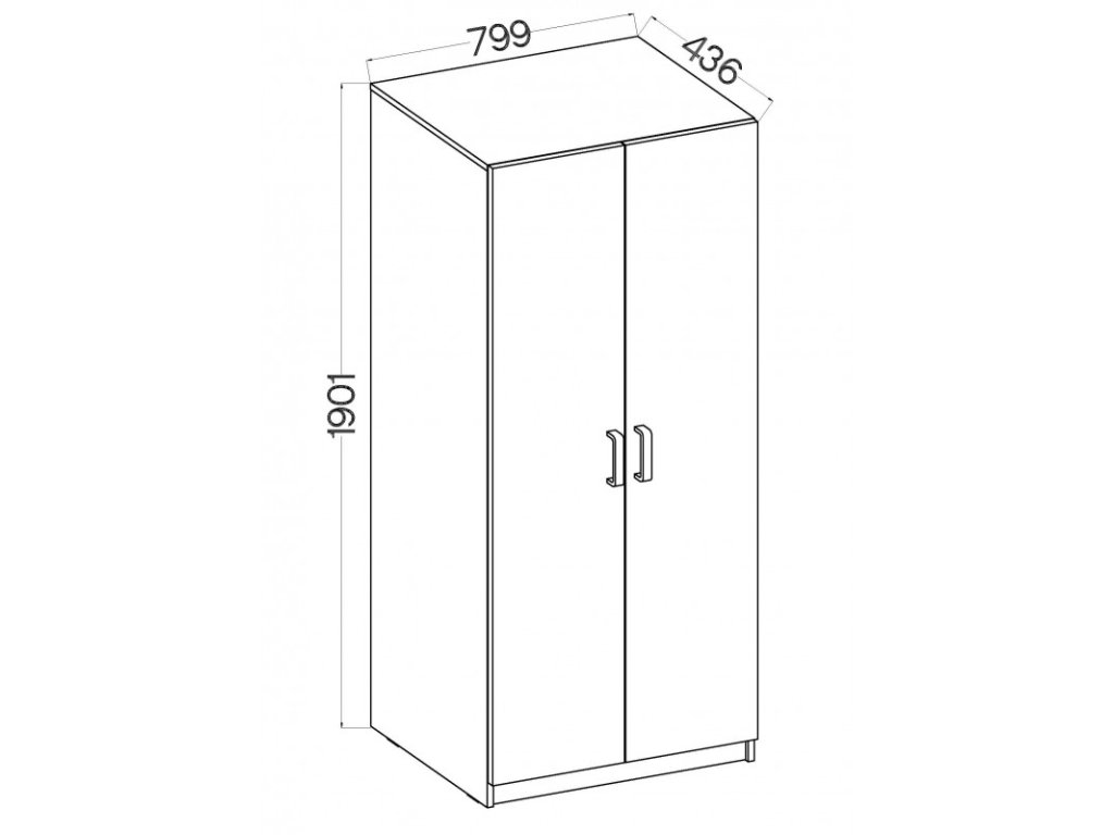 šířka: 80 cm | výška: 205 cm | hloubka: 52 cm Jednoduchá šatní skříň, která se díky svým rozměrům vejde i do malých prostorů. Korpus i dveře jsou z kvalitní LTD desky v barvě...