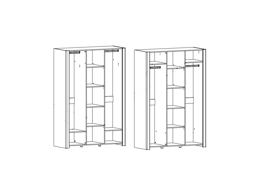 šířka: 135 cm | výška: 190 cm | hloubka: 57 cm Šatní skříň se zrcadlem ze sektorové řady. Skříň má 3 dveře. Napravo se nacházeji 4 police, nalevo a uprostřed 1 police a volný...