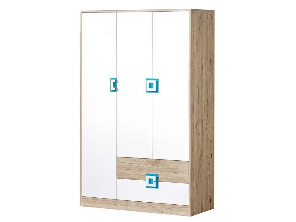 Šatní skříň 3-dveřová NIKO 3 dub jasný/bílá/tyrkys