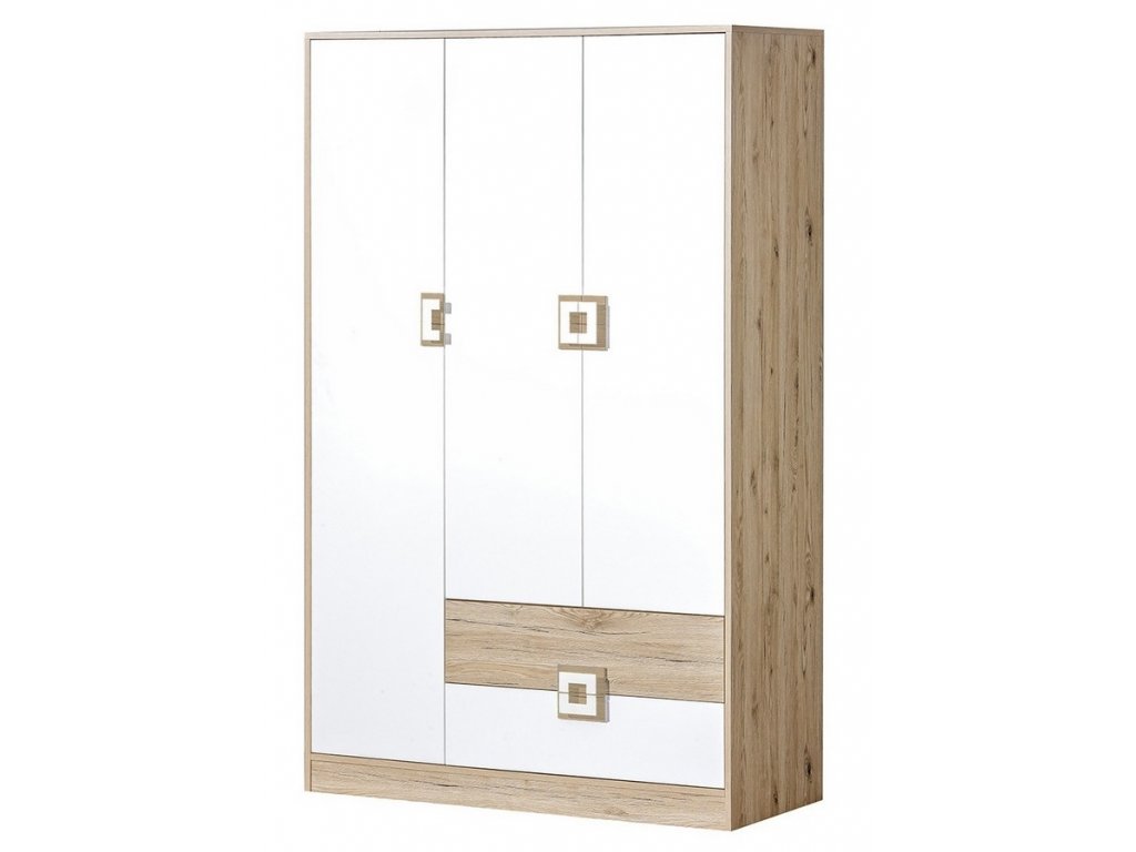 Šatní skříň 3-dveřová NIKO 3 dub jasný/bílá