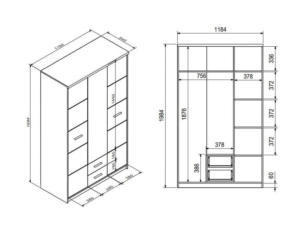 šířka: 120 cm | výška: 205 cm | hloubka: 52 cm Jednoduchá šatní skříň se zrcadlem, která se díky svým rozměrům vejde i do malých prostorů. Korpus i dveře jsou z kvalitní LTD...