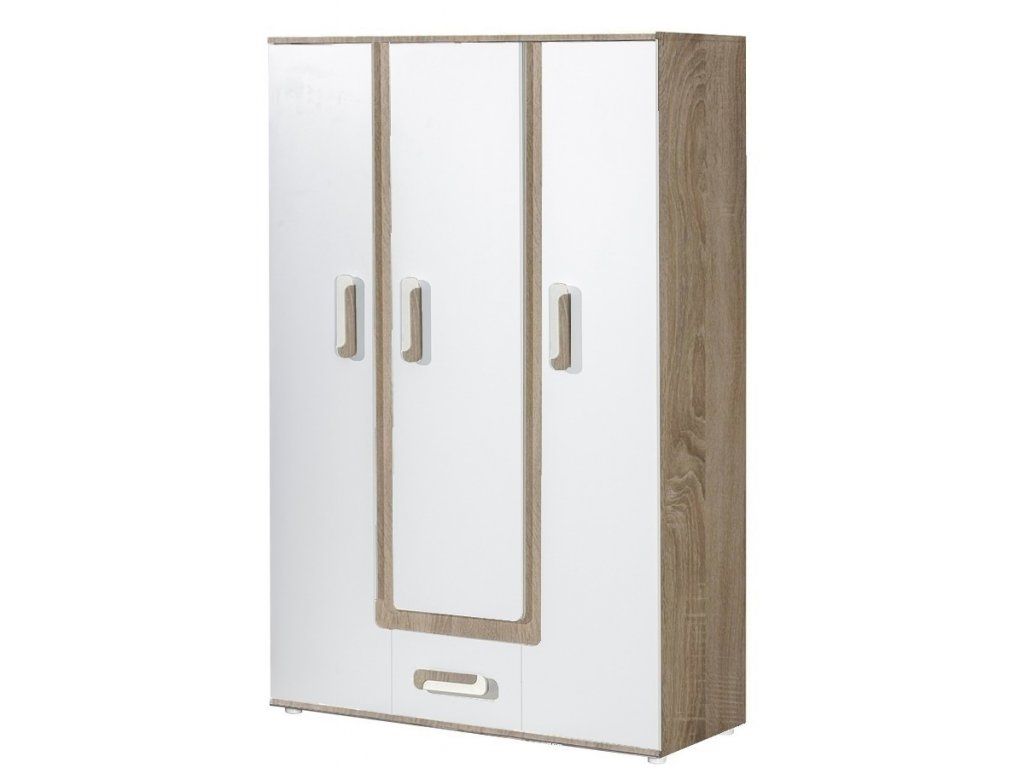 Třídveřová šatní skříň APETTITA ze sektorové řady, která se vyznačuje netradičním zpracováním barev a originalitou úchytů. Tento styl nábytku zaujme každou mladší generaci. Skříň je vyrobena z kvalitní LTD desky hraněné ABS lištou. Korpus je v barvě dub jasný, dveře jsou bílé matné. Úchytky jsou v barevné kombinaci dub jasný/bílá. Uvnitř skříně je šatníková tyč a police, v dolní části je zásuvka. Sektorový nábytek APETTITA má široký výběr prvků, který Vám zaručí sestavit si dětský nebo studentský pokoj, ložnici či kancelář podle svých potřeb, přání a představ. Dodáváme v demontovaném stavu.Doplňkové parametry