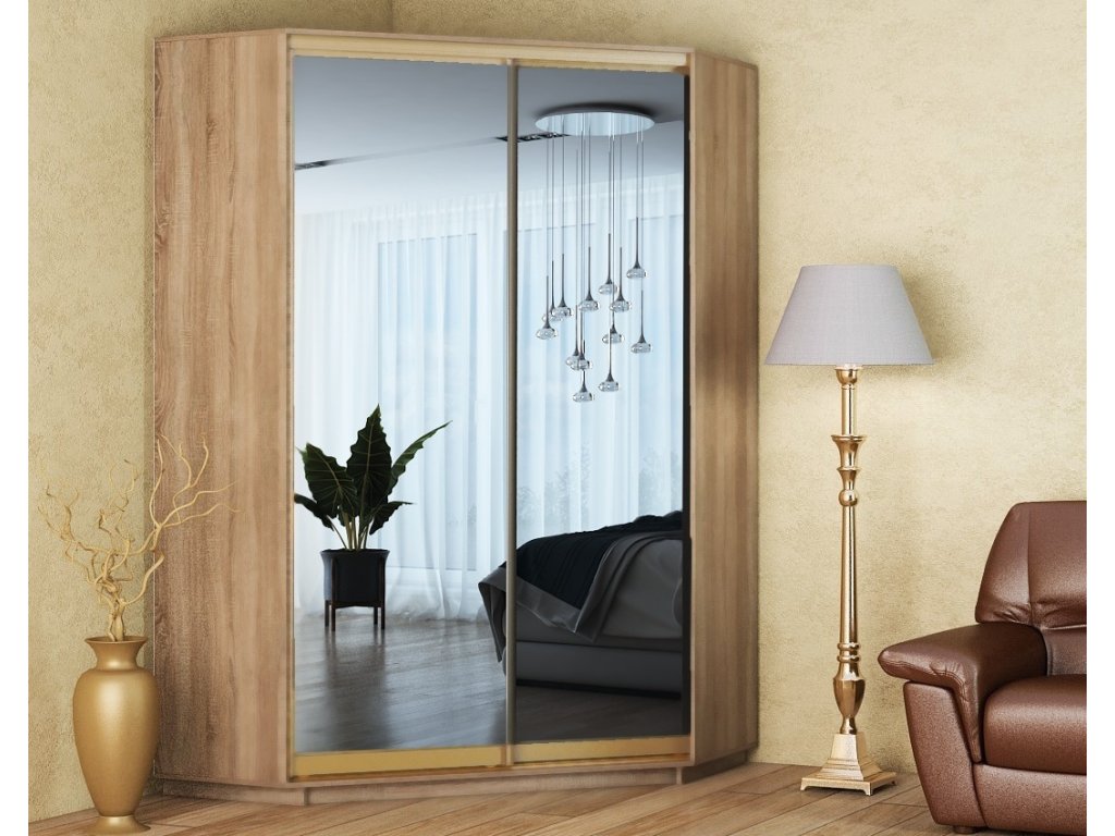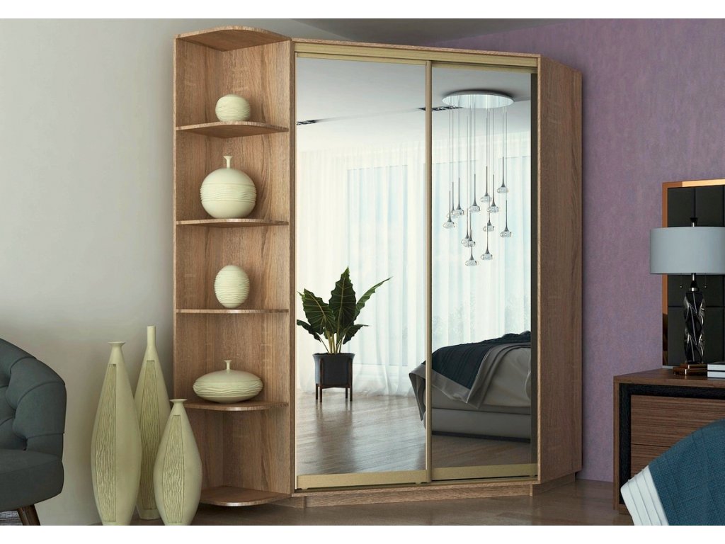 Šatní skříň rohová CORA 140/220 sonoma/zrcadlo