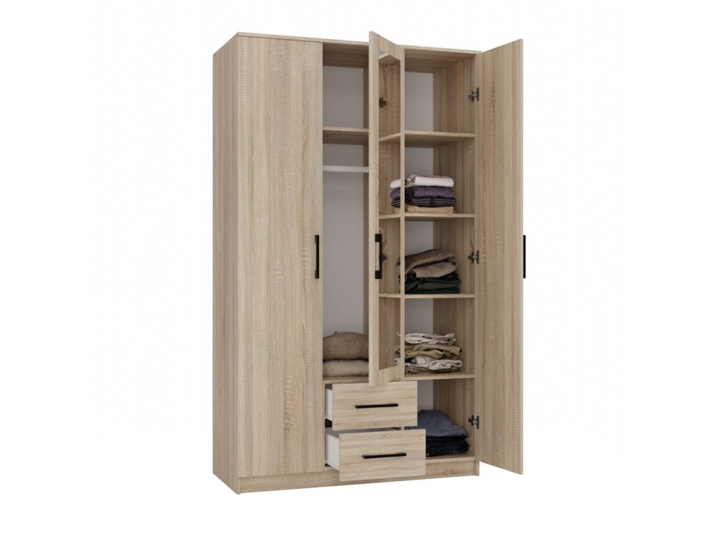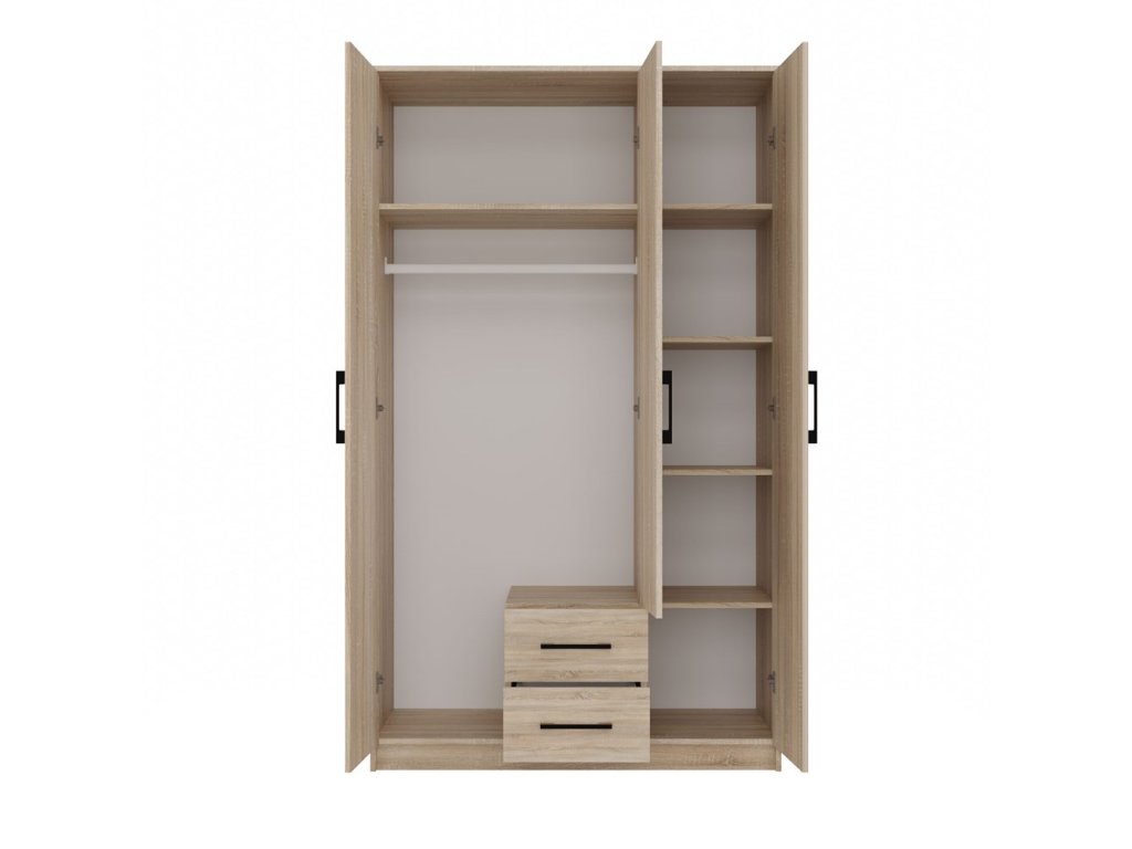 šířka: 120 cm | výška: 190 cm | hloubka: 50 cm Třídveřová šatní skříň NIKO ze sektorové řady, která se vyznačuje netradičním zpracováním barev a originalitou úchytů. Tento styl...