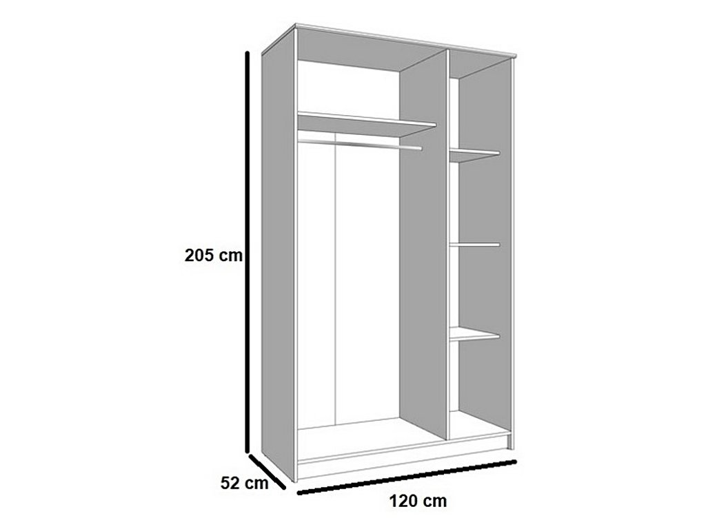 šířka: 120 cm | výška: 205 cm | hloubka: 52 cm Jednoduchá šatní skříň se zrcadlem, která se díky svým rozměrům vejde i do malých prostorů. Korpus i dveře jsou z kvalitní LTD...