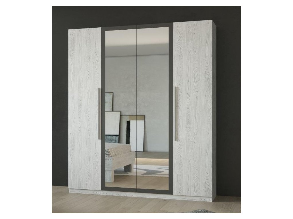 šířka: 180 cm | výška: 215,8 cm | hloubka: 55,6 cm Šatní skříň čtyřdveřová se zrcadlem z ložnicové řady. Detailně a esteticky zpracováno v bílé moderní barvě. Oblé tvary a...