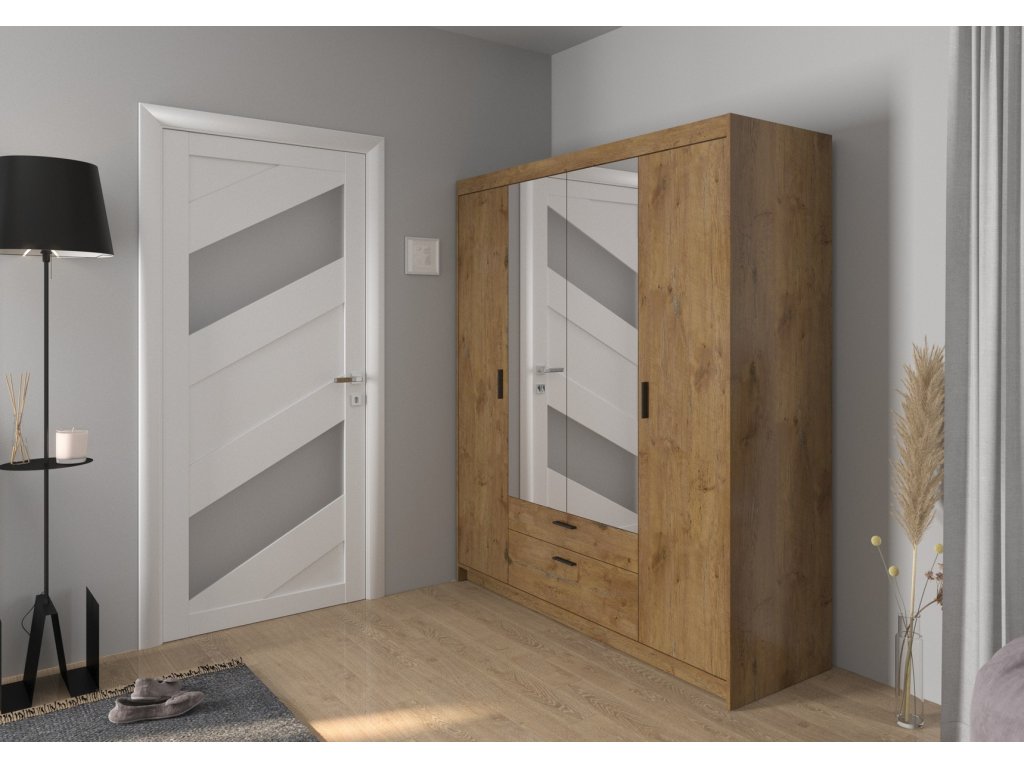 Šatní skříň ELINA 4D dub lefkas/zrcadlo
