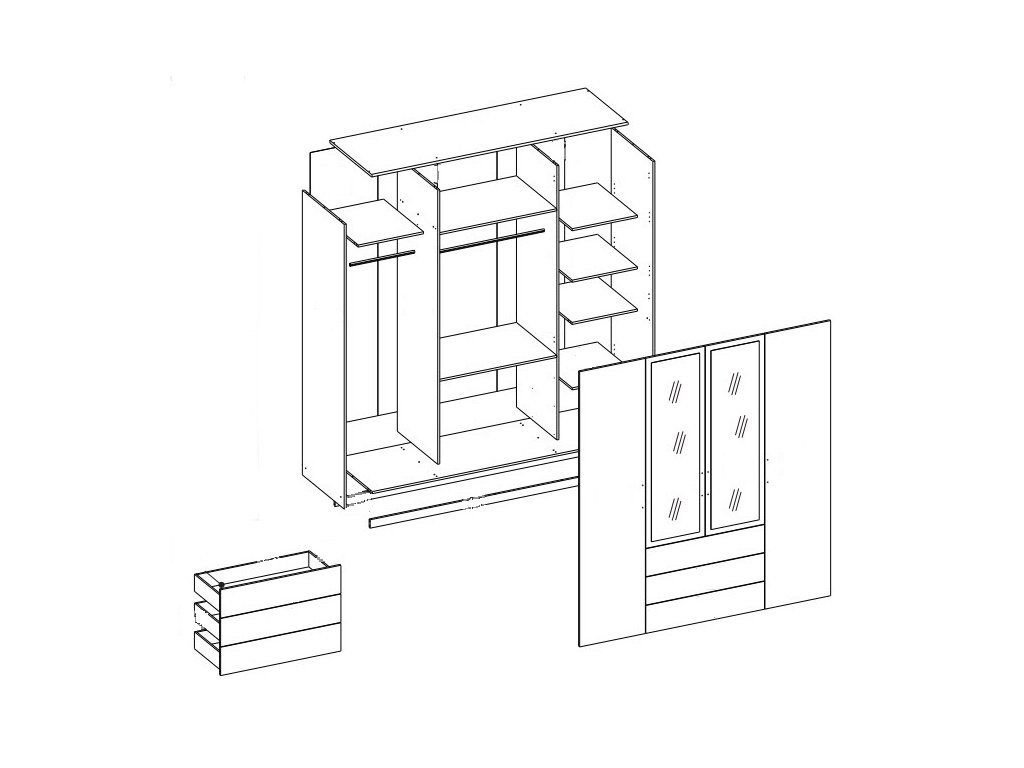šířka: 196 cm | výška: 200 cm | hloubka: 58 cm Šatní skříň 4-dveřová v moderním provedení. Korpus i dvířka jsou z kvalitního LTD v barvě bílé. Skříň obsahuje praktické zrcadlo....
