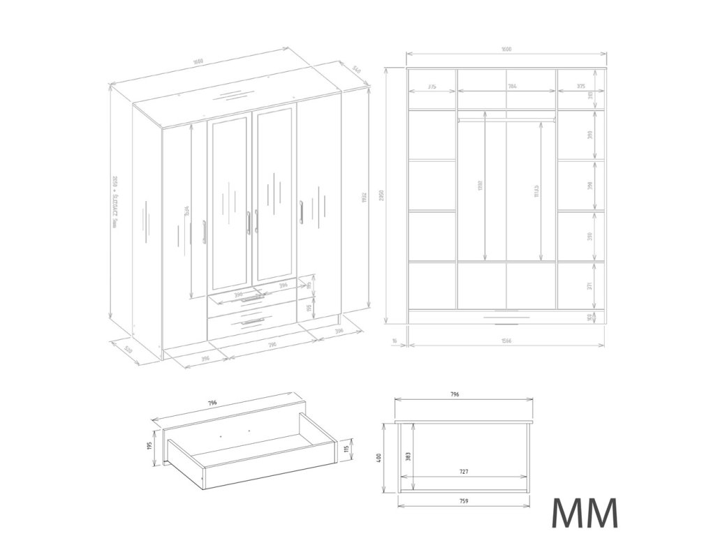 šířka: 196 cm | výška: 200 cm | hloubka: 58 cm Šatní skříň 4-dveřová v moderním provedení. Korpus i dvířka jsou z kvalitního LTD v barvě bílé. Skříň obsahuje praktické zrcadlo....