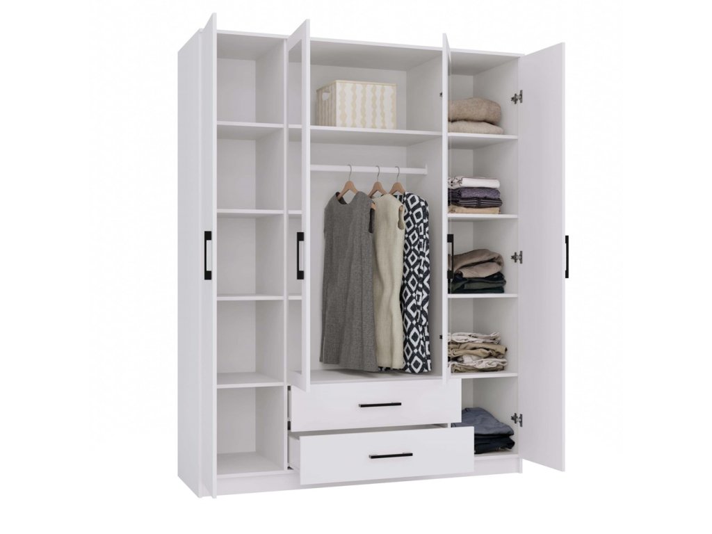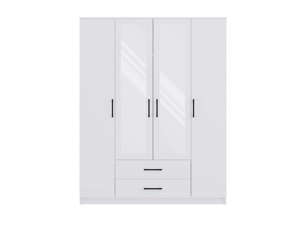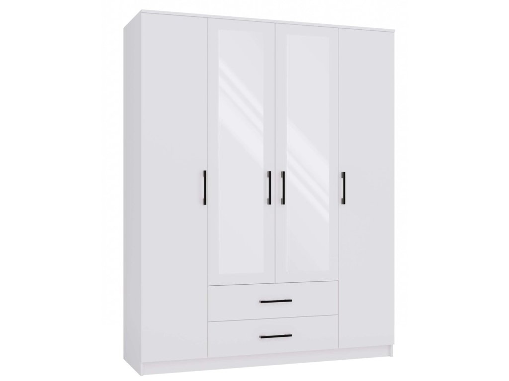 šířka: 196 cm | výška: 200 cm | hloubka: 58 cm Šatní skříň 4-dveřová v moderním provedení. Korpus i dvířka jsou z kvalitního LTD v barvě bílé. Skříň obsahuje praktické zrcadlo....