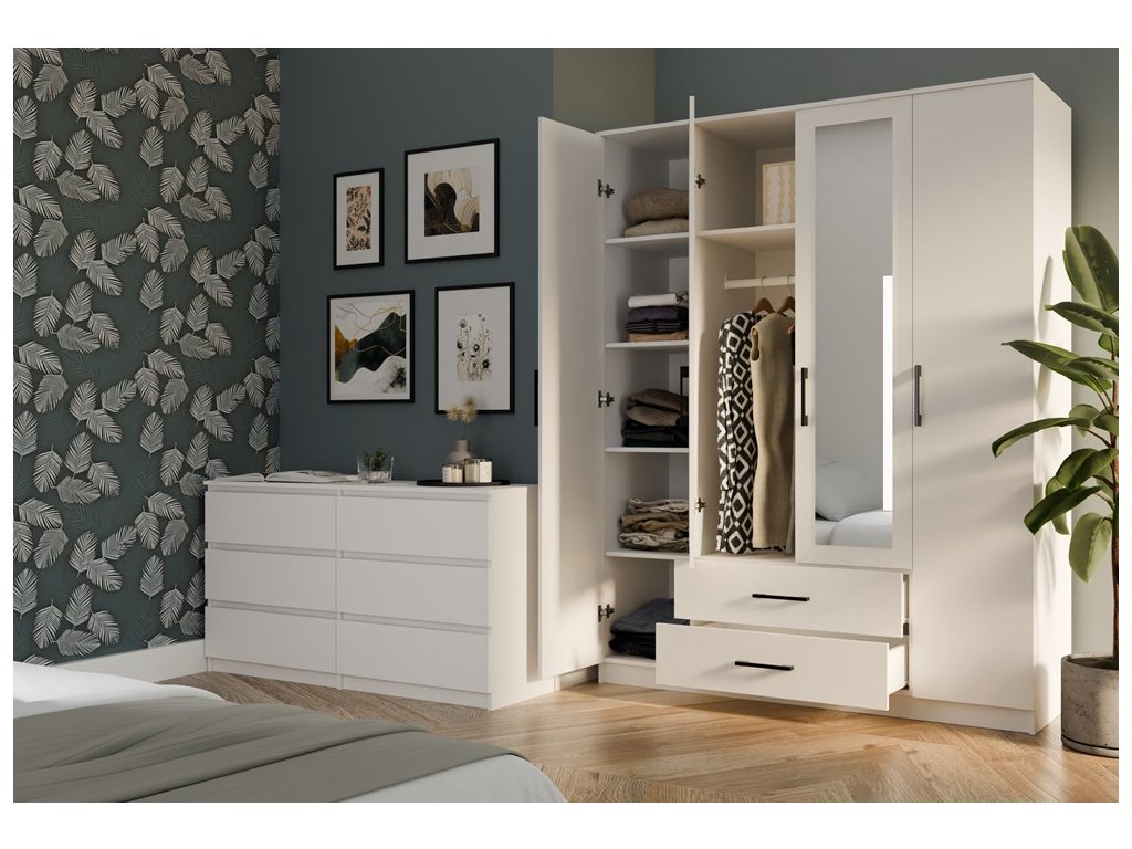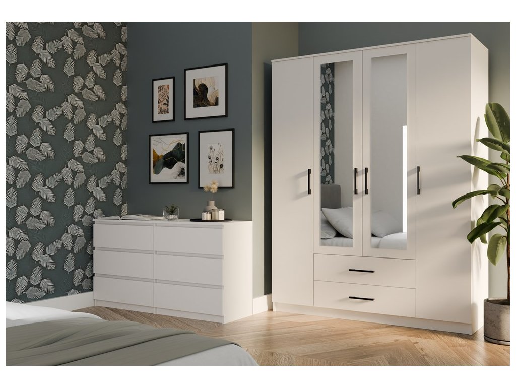 Šatní skříň se zrcadlem ROMA 4D2S bílá