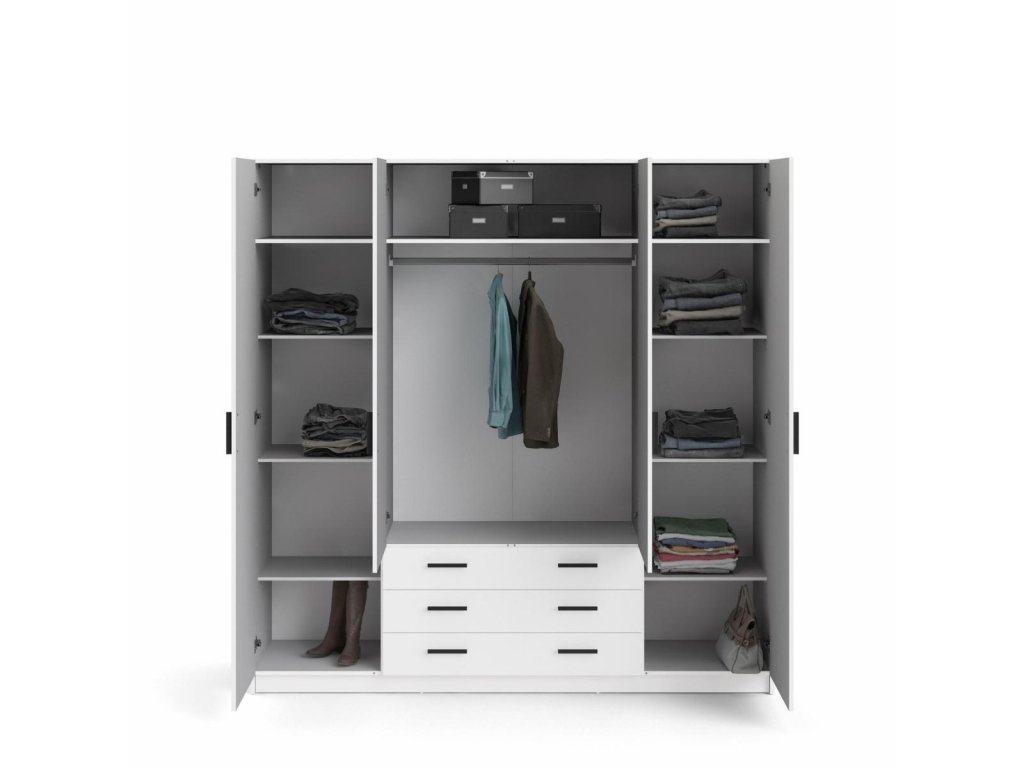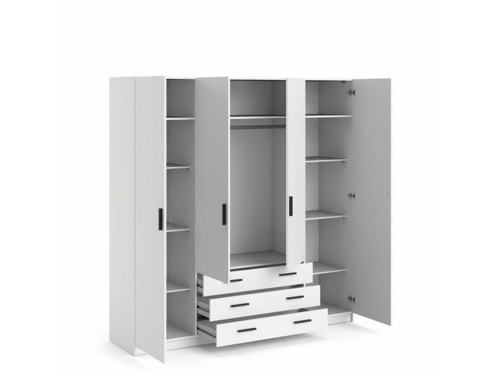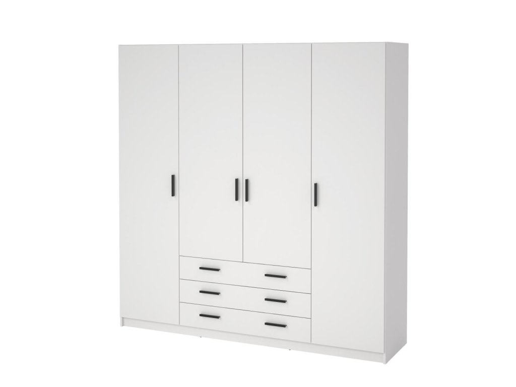 šířka: 196 cm | výška: 200 cm | hloubka: 58 cm Šatní skříň 4-dveřová v moderním provedení. Korpus i dvířka jsou z kvalitního LTD v barvě bílé. Skříň obsahuje praktické zrcadlo....