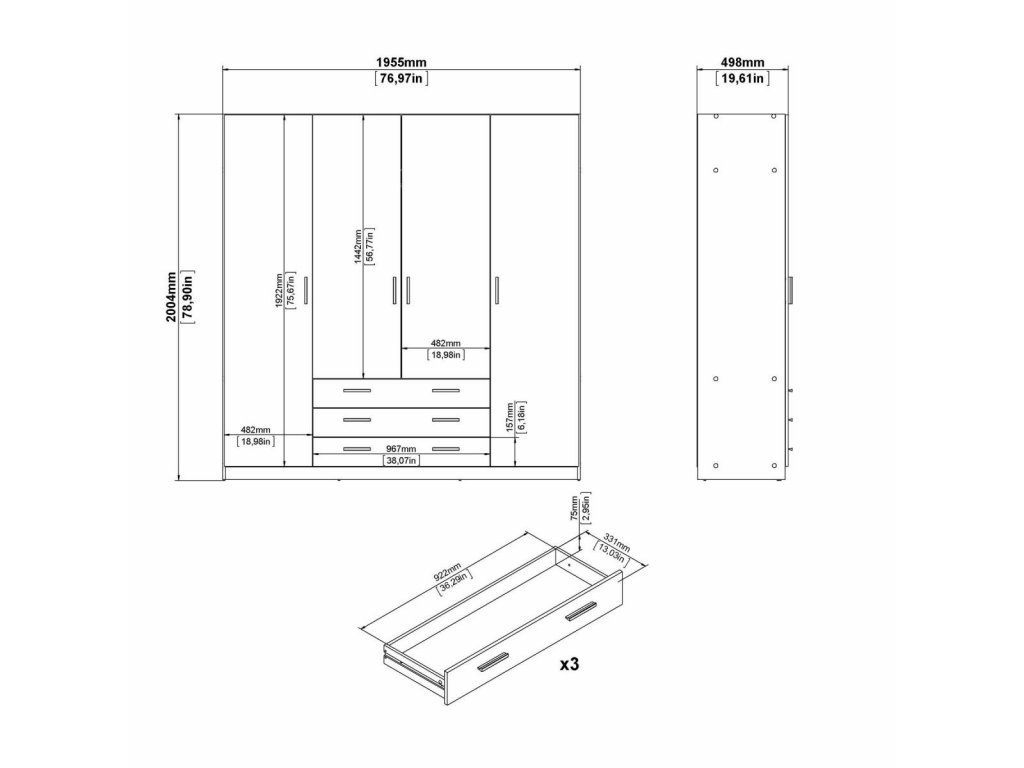šířka: 195,5 cm | výška: 200,4 cm | hloubka: 49,8 cm Šatní skříně Spike v nadčasovém designu bez námahy doplní jakýkoliv interiér. Praktické vnitřní uspořádání s nastavitelnými...