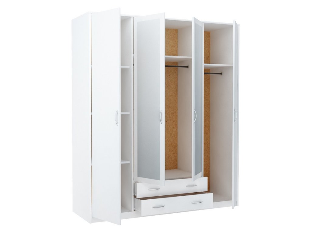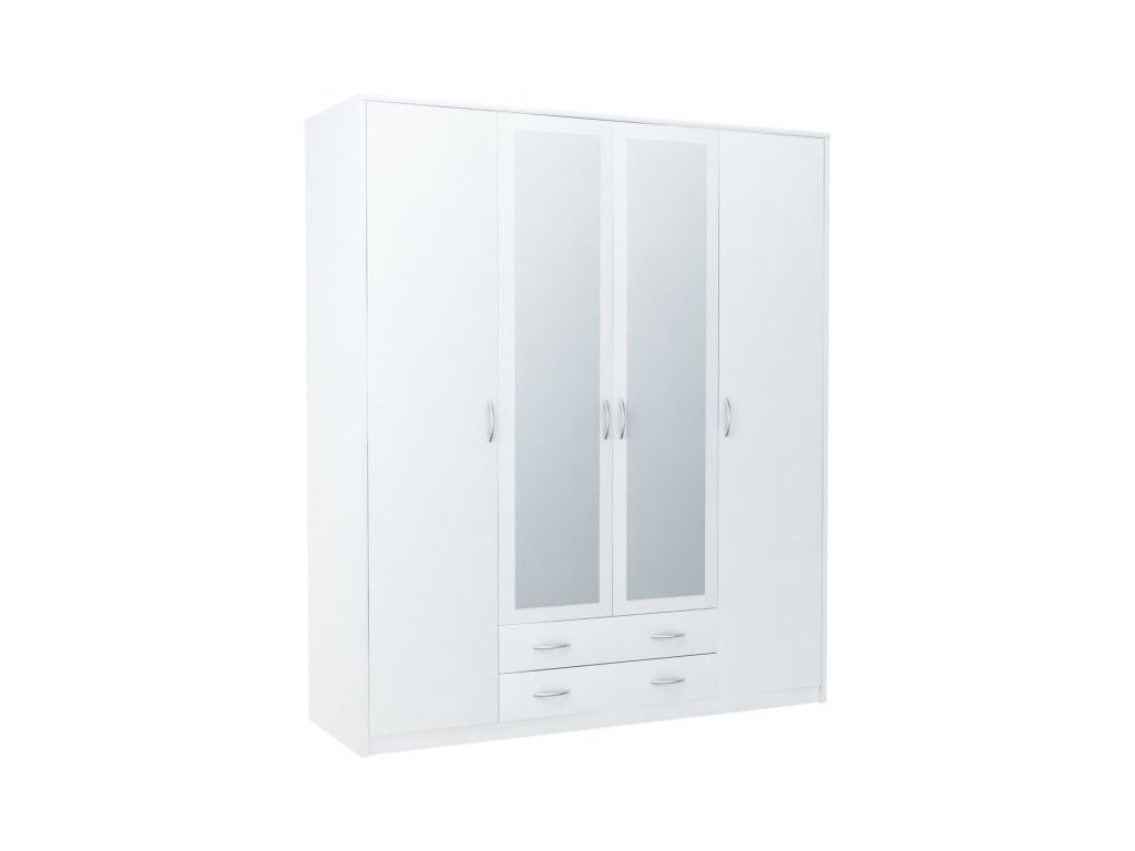 šířka: 196 cm | výška: 200 cm | hloubka: 58 cm Šatní skříň 4-dveřová v moderním provedení. Korpus i dvířka jsou z kvalitního LTD v barvě bílé. Skříň obsahuje praktické zrcadlo....