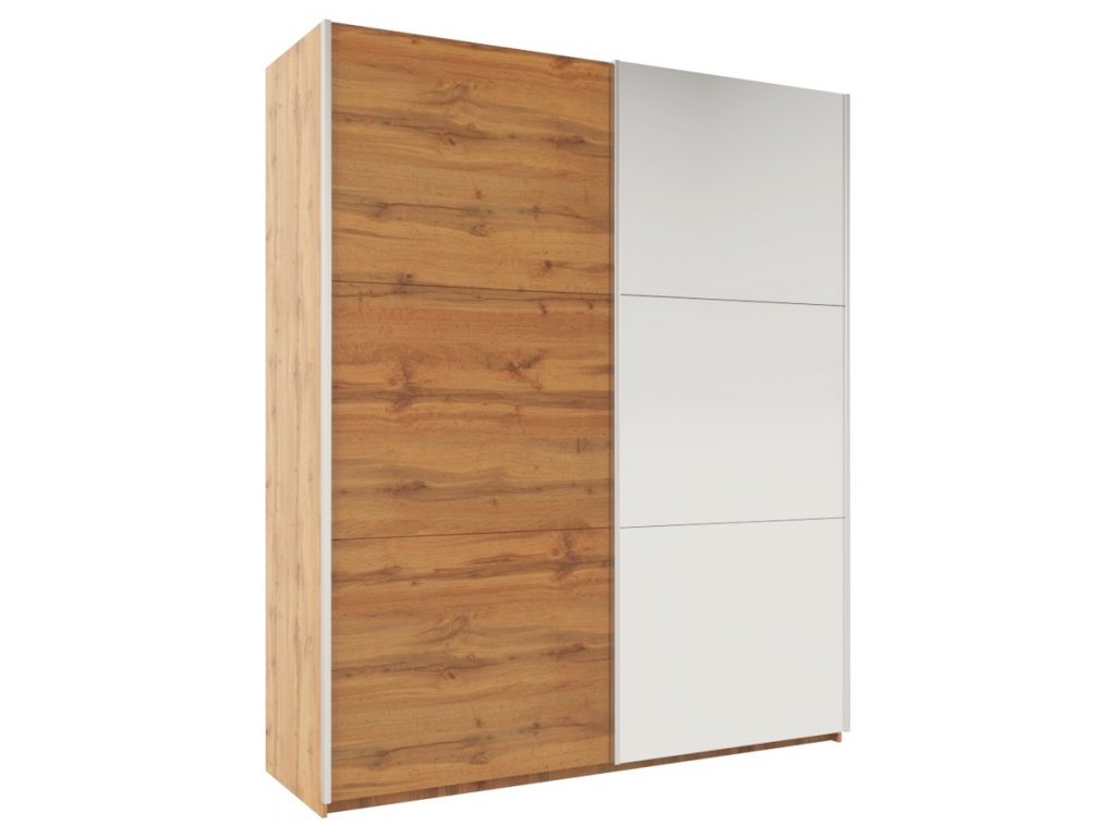 šířka: 203 cm | výška: 215 cm | hloubka: 61 cm Šatní skříň s posuvnými dveřmi v moderním provedení. Korpus i dvířka jsou z kvalitního LTD v barvě dub sonoma. Levé dveře jsou v...