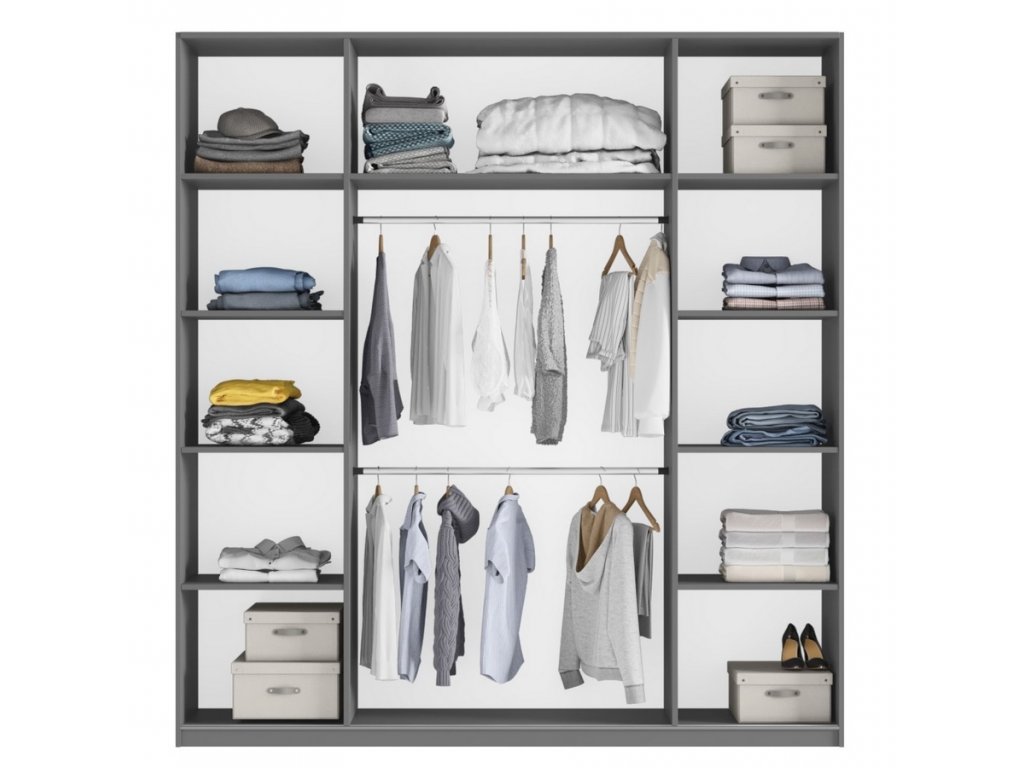 šířka: 250 cm | výška: 215 cm | hloubka: 61 cm Šatní skříň s posuvnými dveřmi v moderním provedení. Korpus i dvířka jsou z kvalitního LTD v barvě bílé. Dveře obsahují...