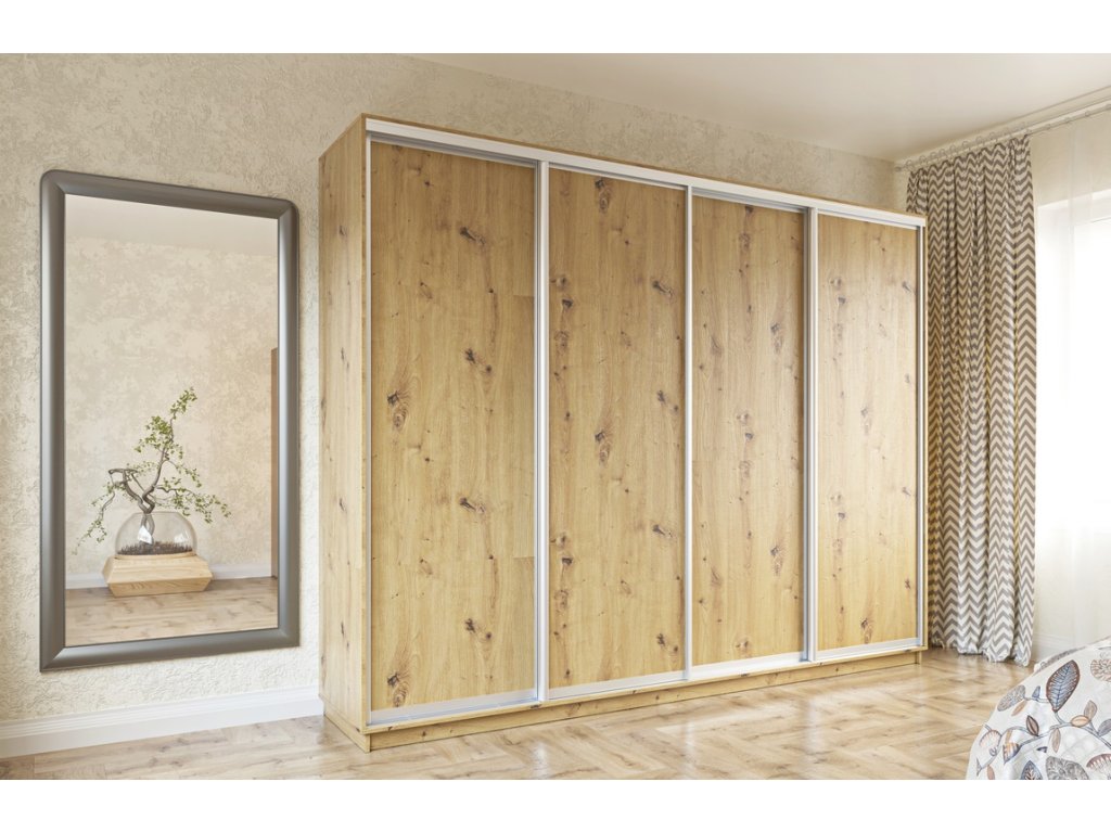 Šatní skříň s posuvnými dveřmi v moderním provedení. Nezvyklá výška 220 cm a šířka 280 cm Vám nabídne opravdu velký úložný prostor. Korpus i dveře jsou z kvalitní LTD desky v barvě dub artisan. Skříň má aluminiové kování a lišty. Uspořádání polic viz. obrázek. Dodáváme v demontovaném stavu.Doplňkové parametry