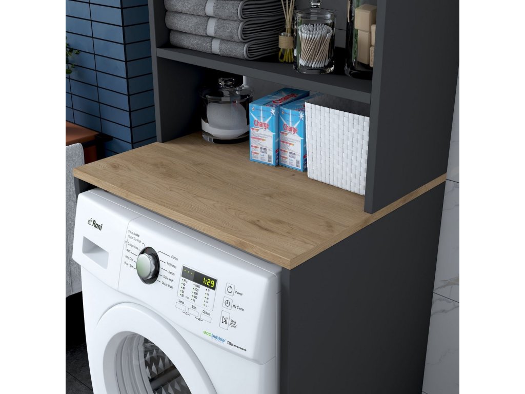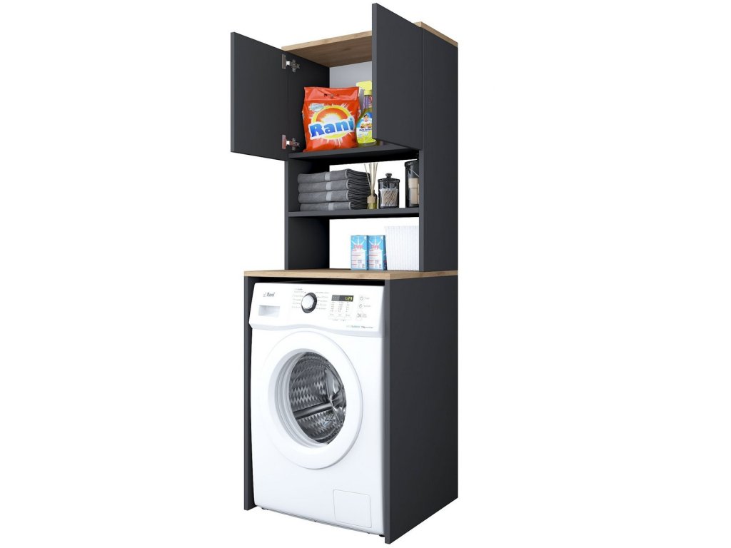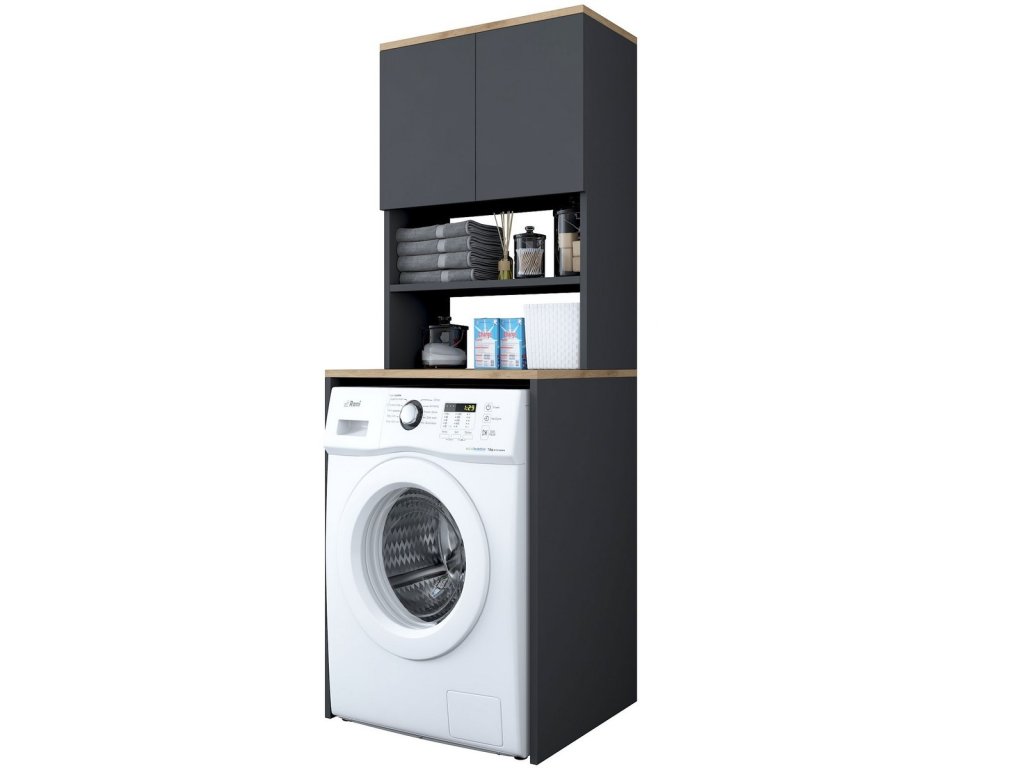CODEX je moderní skříňka nad pračku navržená pro efektivní využití prostoru ve vaší koupelně. Tento víceúčelový kus nábytku nabízí praktické řešení pro uskladnění vašich koupelnových potřeb, zatímco dodává interiéru styl díky kombinaci ořechového dekoru a antracitového povrchu.