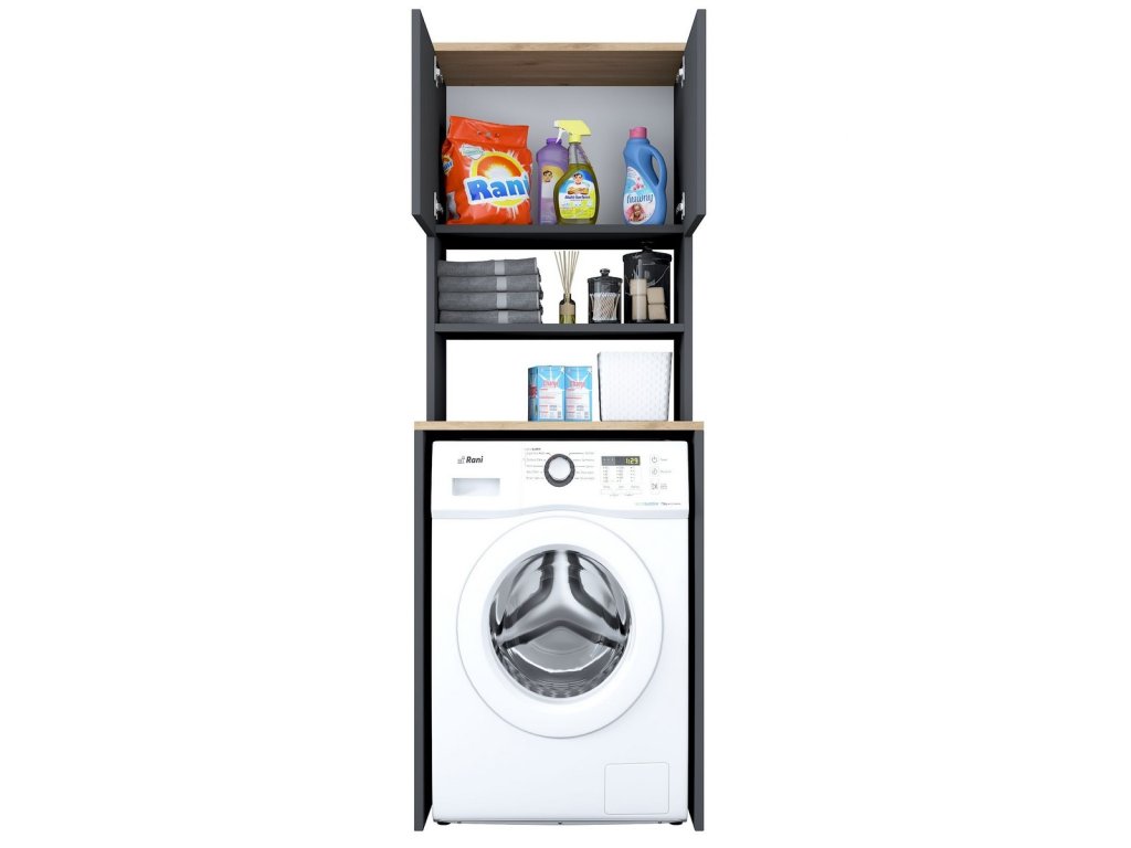 šířka: 60 cm | výška: 180,5 cm | hloubka: 19,8 cm Vysoká vestavná skříň na pračku, stylová a zároveň vhodná do moderních interiérů. V horní části je dvoudveřová skříňka, ve...