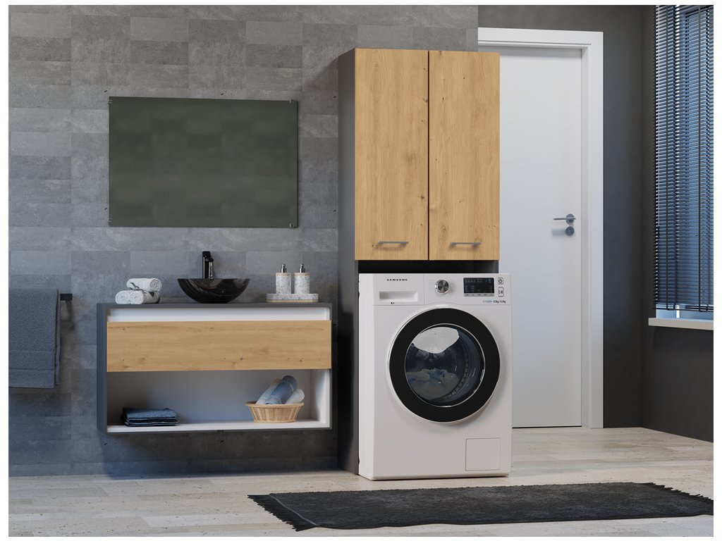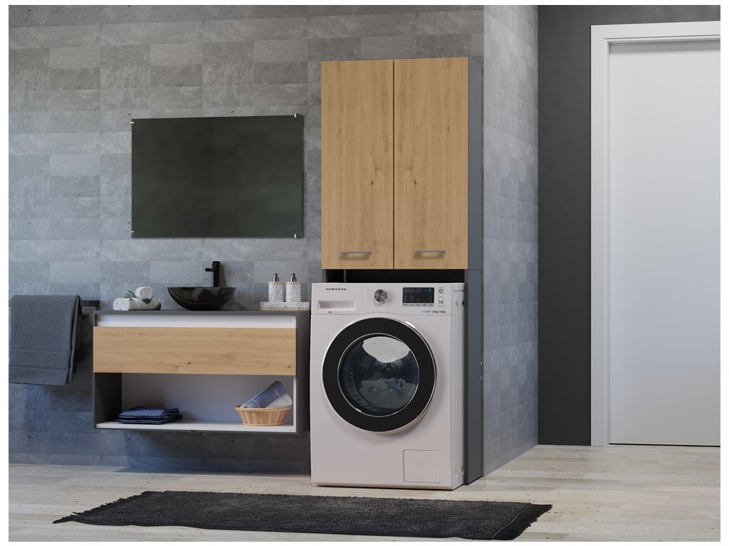 Vysoká skříňka nad pračku POLA DD antracit/dub artisan