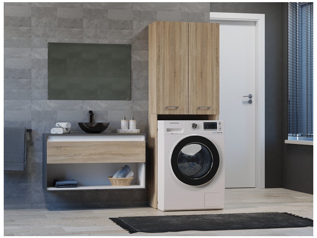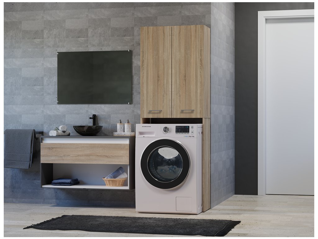 Vysoká skříňka nad pračku POLA DD je ideálním řešením pro malé prostory. Skříňka má 4 police skryté za dvířky, které nabízí dostatek úložného prostoru, kde můžete uložit kosmetiku, ručníky a další doplňky potřebné v koupelně. Díky tomu už nebudete mít starosti s nepořádkem ve vaší koupelně. Vyrobeno z kvalitní LTD desky, která má tloušťku 16 mm a je nenáročná na údržbu. Dodáváme v demontu. V naší další nabídce naleznete tuto skříňku v dalších variantách.