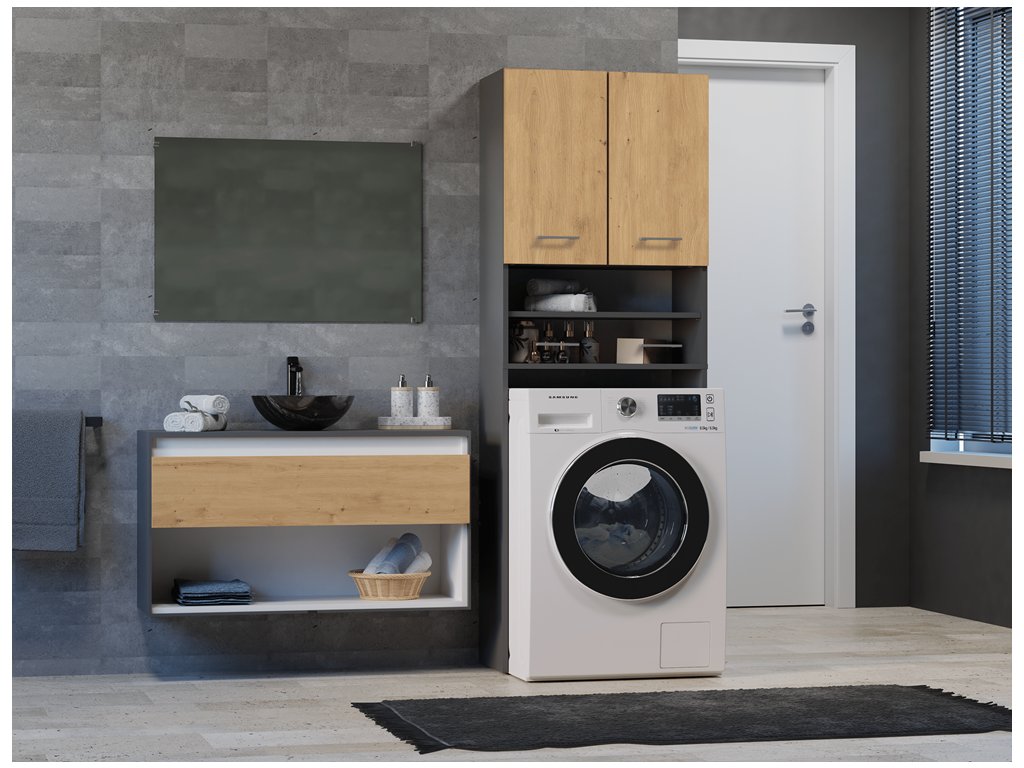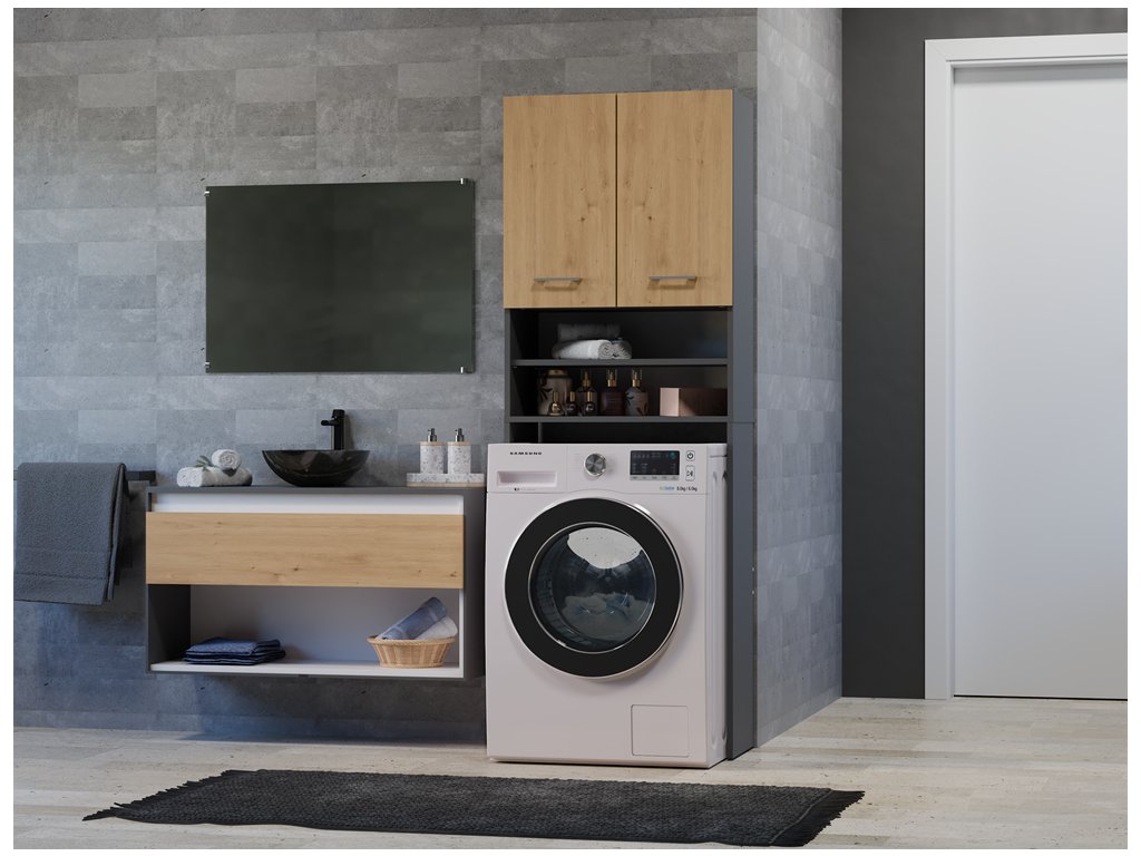 Vysoká skříňka nad pračku POLA DK antracit/dub artisan