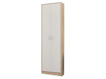 šířka: 55,3 cm | výška: 191 cm | hloubka: 27,5 cm Moderní šatní skříň vyrobena z kvalitní laminátové desky v barevné kombinaci dub sonoma/bílá. Ke skříni lze dokoupit věšákovou...