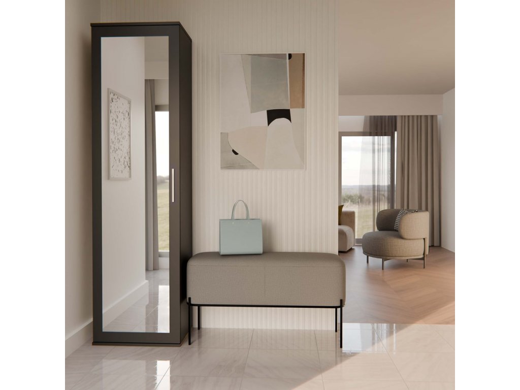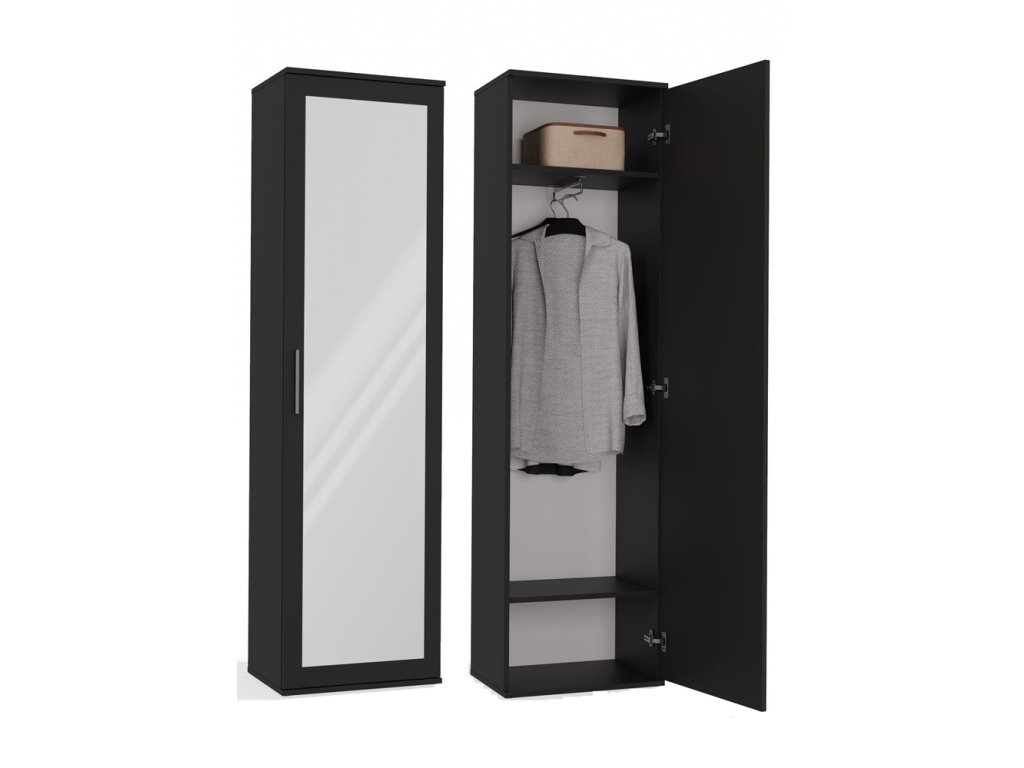 šířka: 50 cm | výška: 180 cm | hloubka: 35 cm Šatní skříň se zrcadlem se skvěle hodí do každé předsíně.Hlavní výhody: 2 praktické policeDržák na věšákyVelké zrcadloKvalitní lamino