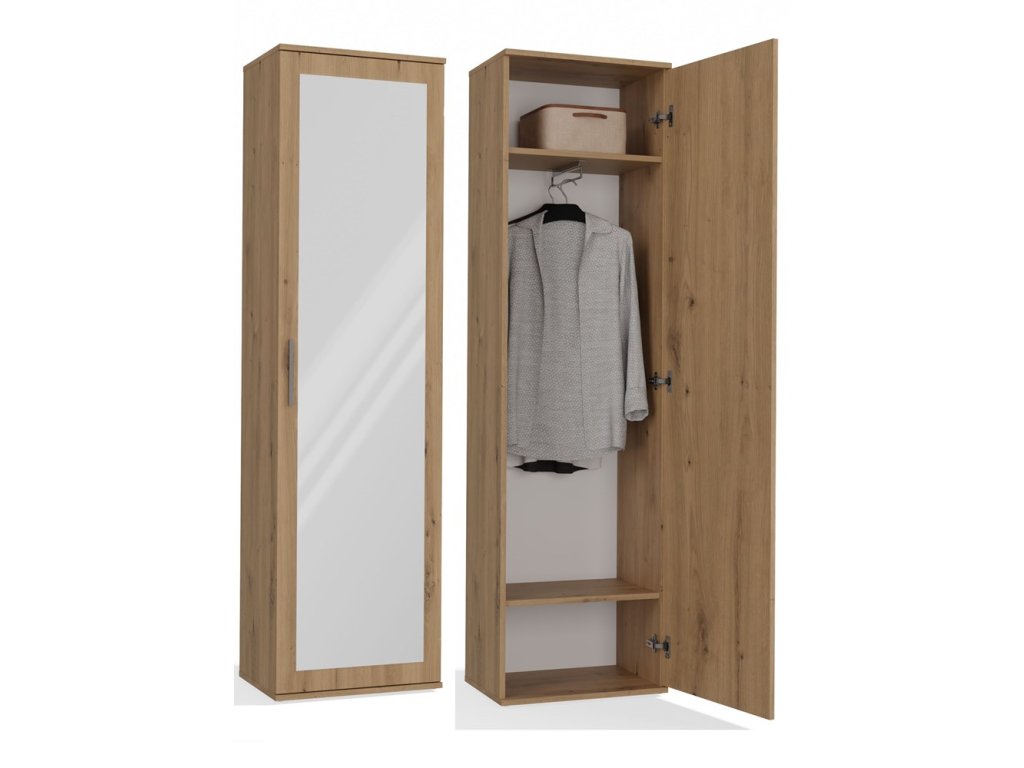 šířka: 50 cm | výška: 180 cm | hloubka: 35 cm Šatní skříň se zrcadlem se skvěle hodí do každé předsíně.Hlavní výhody: 2 praktické policeDržák na věšákyVelké zrcadloKvalitní lamino