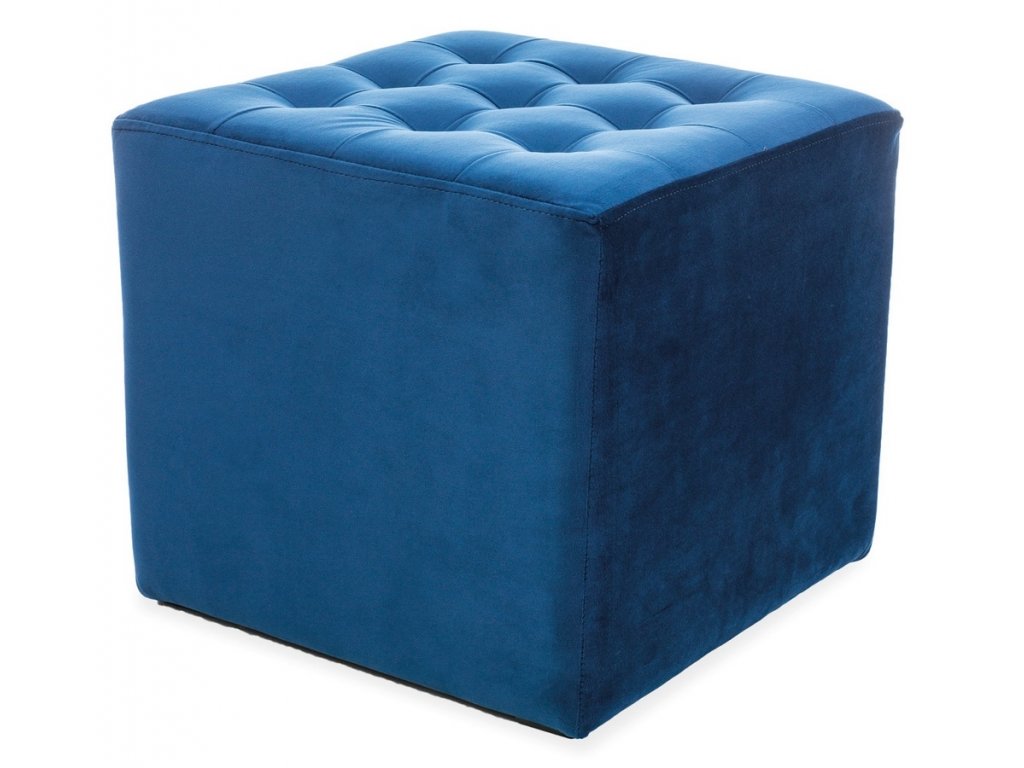 Měkký polstrovaný taburet - puf oceníte nejen jako pohodlnou opěrku pod nohy či na sezení, ale také jako elegantní doplněk do Vašeho interiéru. Čalounění je z látky aksamit v granátově modré barvě.
