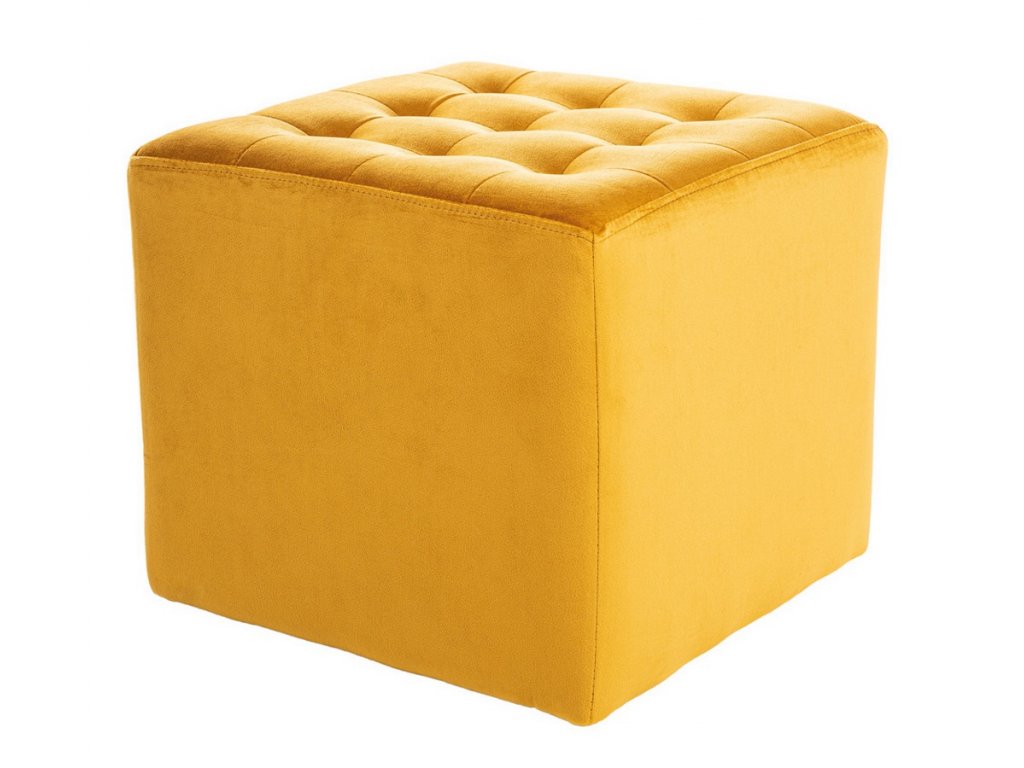 Měkký polstrovaný taburet - puf oceníte nejen jako pohodlnou opěrku pod nohy či na sezení, ale také jako elegantní doplněk do Vašeho interiéru. Čalounění je z látky aksamit (bluvel 68) ve žluté curry barvě.