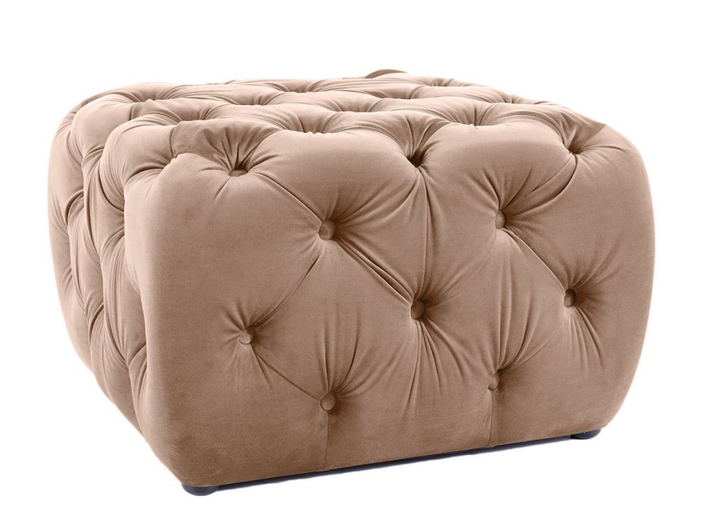 Měkký polstrovaný taburet - puf oceníte nejen jako pohodlnou opěrku pod nohy či na sezení, ale také jako elegantní doplněk do Vašeho interiéru. Čalounění je z látky aksamit v béžové barvě (Bluvel 28). DOPRODEJ! Poslední 1 ks skladem!